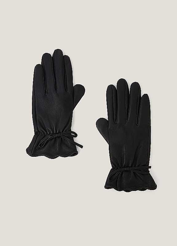 Monsoon Eva Bow Leather Gloves - Black - Size S/M