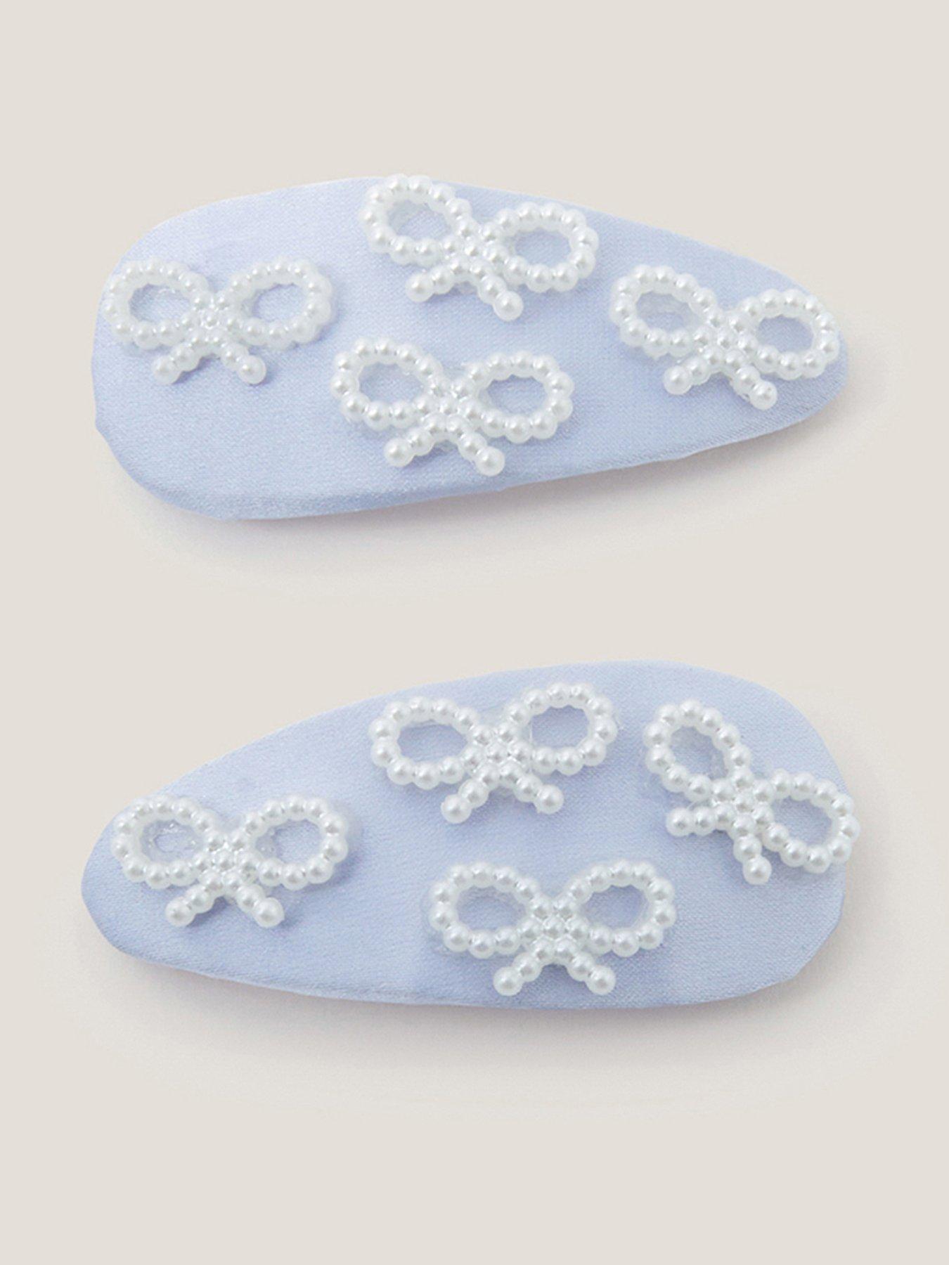 Monsoon Girls 2 Pack Pretty Bow Clickclacks - Light Blue Oooh, Fancy! Designed In Bridgerton Blue, These Hair Clips Are Embellished With Pearly Bows For A Pretty, Polished Finish. Sold As A Set. Warning! Choking Hazard - Small Parts. Not Suitable For Children Under 3 Years Old. Material Content: Iron 45%, Plastic 45%, Polyester 10% Washing Instructions: Wipe Clean
