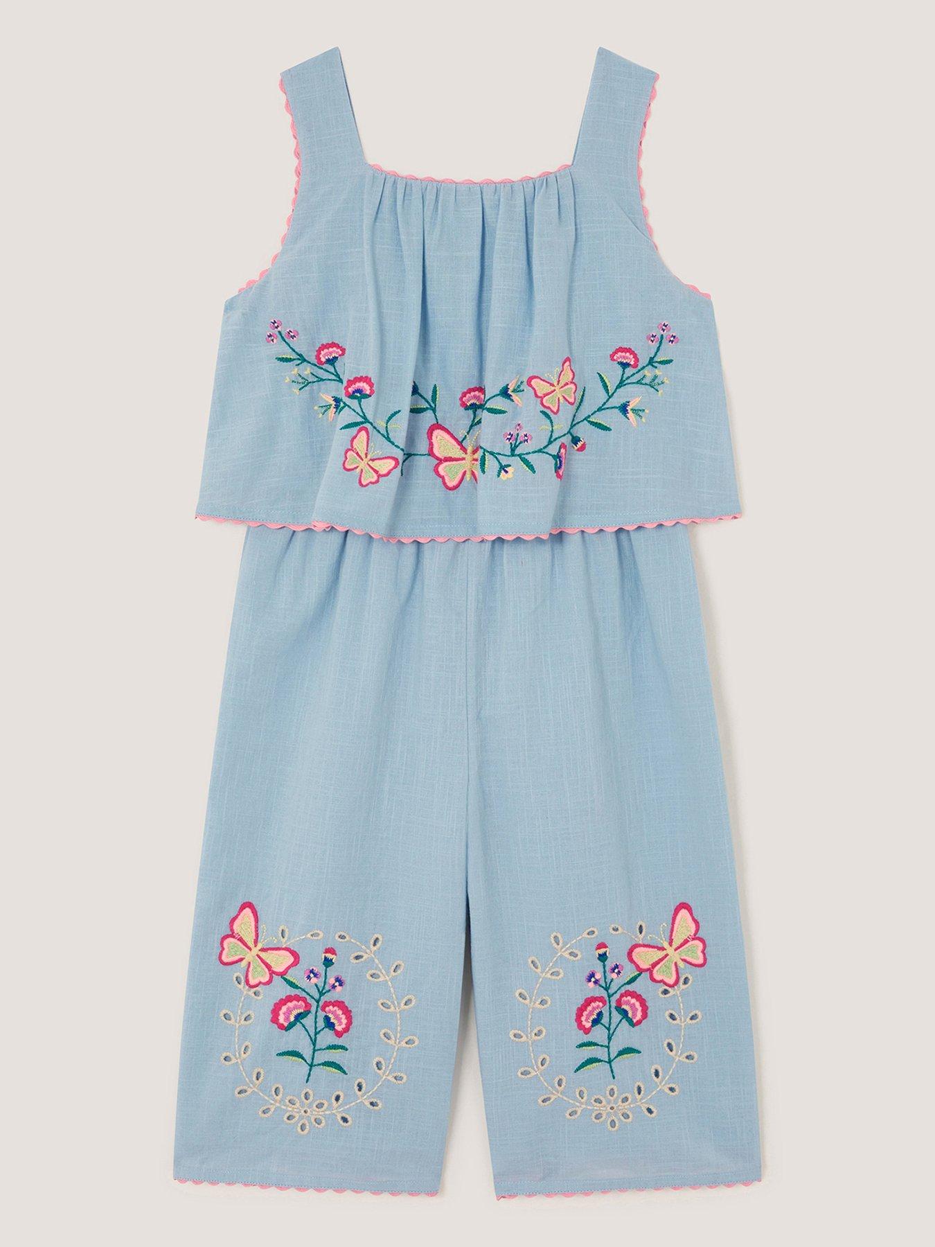 Monsoon Girls Butterfly Culotte Jumpsuit - Blue Jump(Suit) For Joy! Spun In Lightweight Cotton With A Lightly Woven Texture, This Jumpsuit Features A Sleeveless Bodice And Culotte-Style Cuffs. Decorated With Flower Chains, Butterflies And Ric-Rac Trims, It'S A Playful Addition To Their Outfit Rotation. Material Content: Lining: Cotton (B) 100%, Shell: Cotton (B) 100% Washing Instructions: Machine Washable