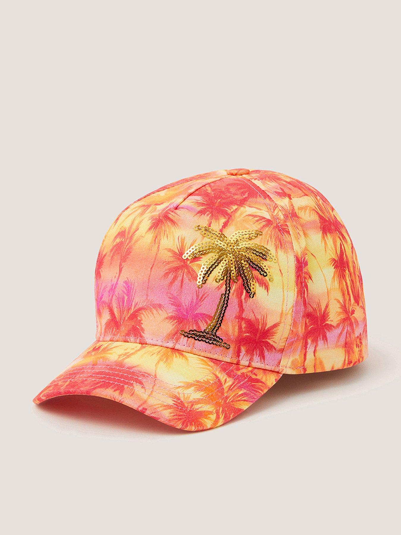 Monsoon Girls Sunset Sparkle Cap - Pink Sunny days and sandy plays. Designed with tropical sunset colours and a sequin palm tree, this cap *screams* summer. So cute, it's worth the hat hair! Material Content: Cotton 100% Washing Instructions: Wipe Clean