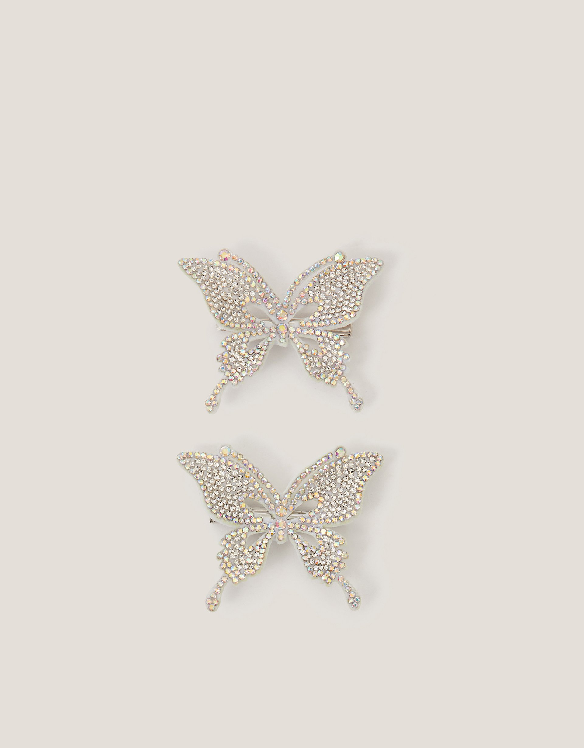 We've got *butterflies*. Slide these your above little one's plaits and ponytails for everyday sparkle. Shaped like fluttery butterflies, these hair clips are bedazzled with rhinestones that shimmer and shine as they catch the light. Two included.Warning! Choking Hazard—Small parts. Not suitable for children under 3 years old.
