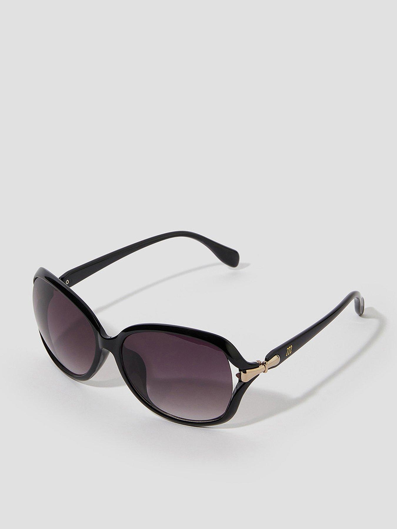 Monsoon Gold Trim Sunglasses Size & Fit One Size Details Gold Trim Sunglasses by Monsoon Black Dark tint lens Tapered arm detail Single bridge Gold trim detail M logo