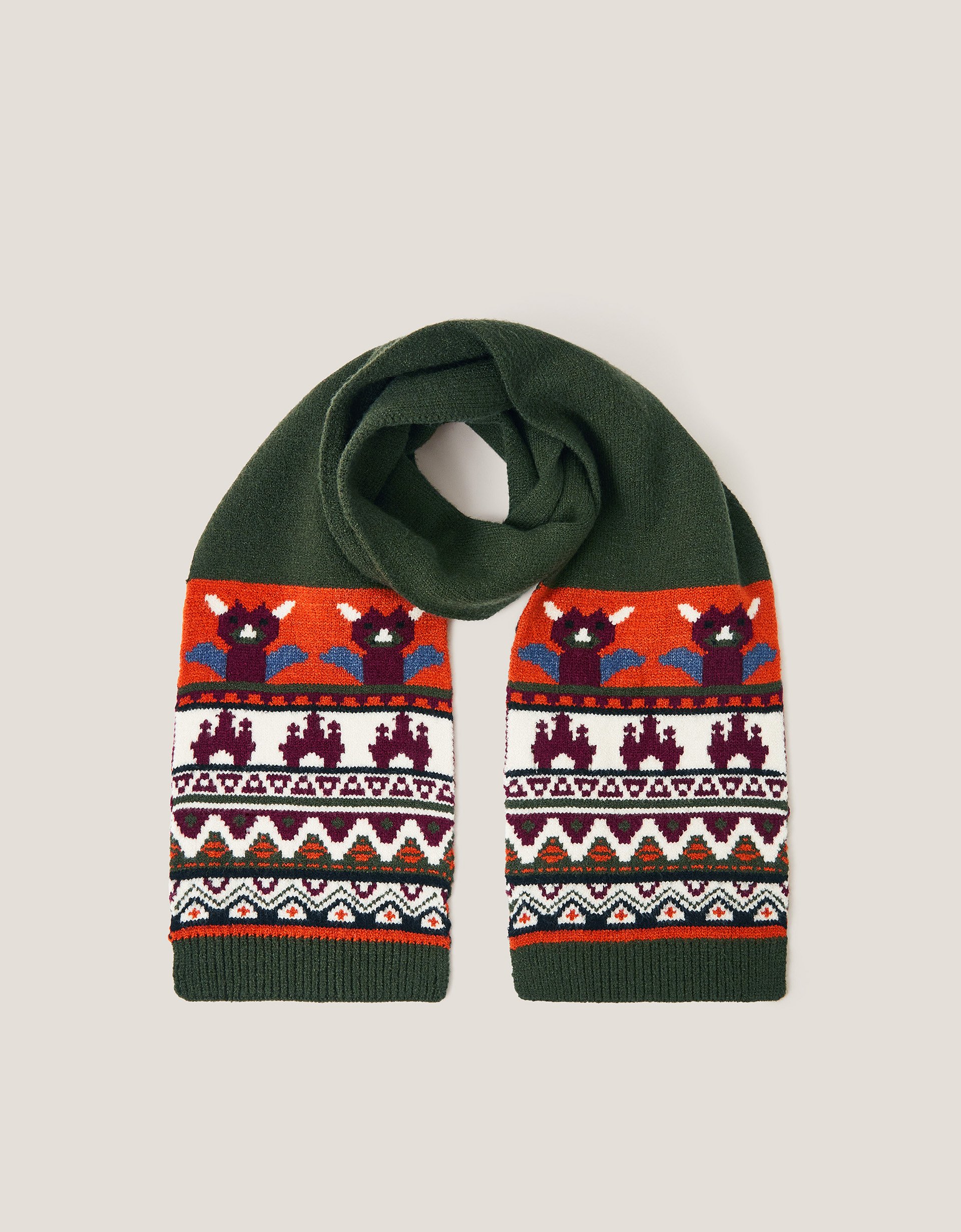Monsoon Green/orange Super-soft Dragon Intarsia Scarf, Plain