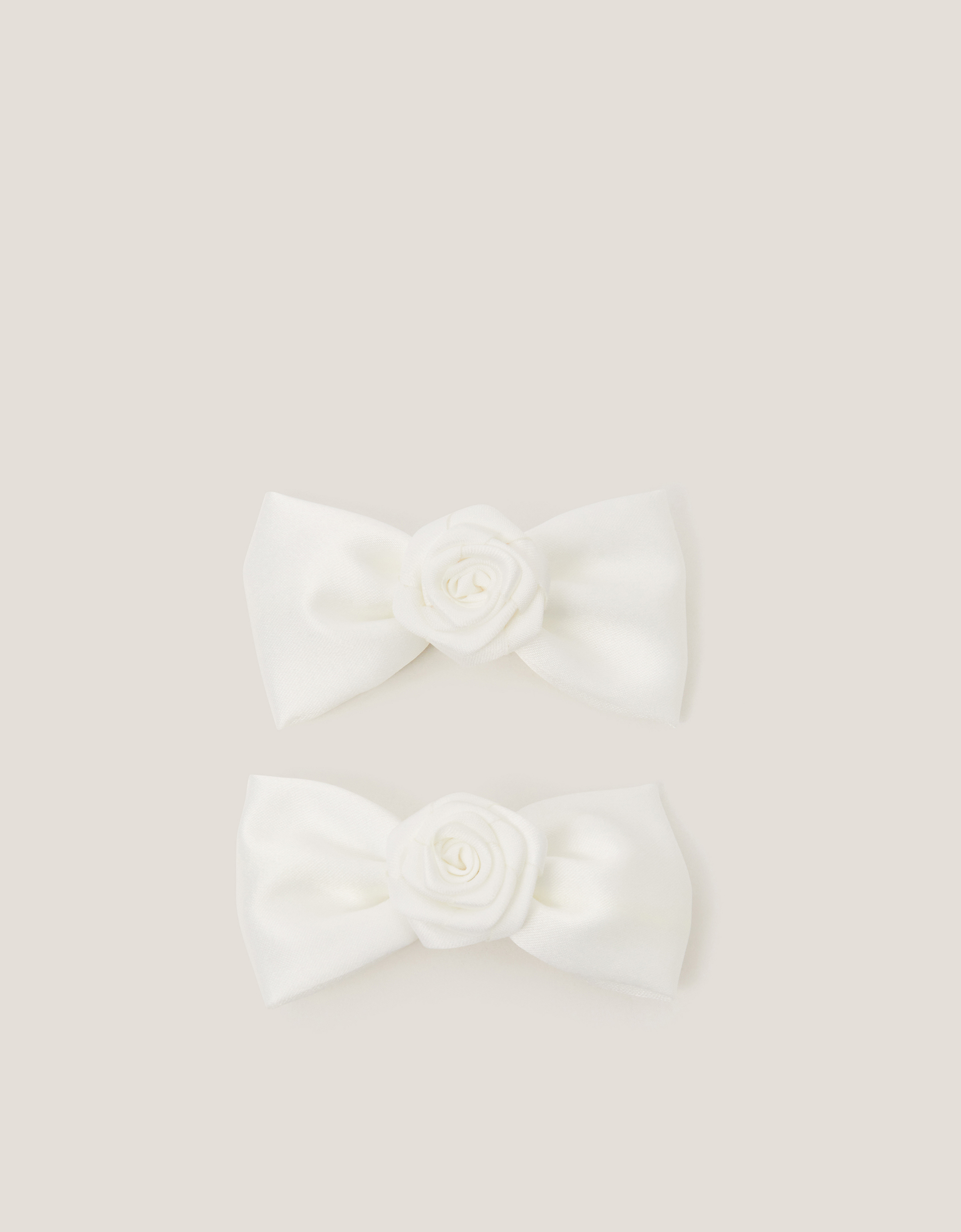 Monsoon Ivory 2-Pack Rose Bow Bridesmaid Hair Clips, Plain