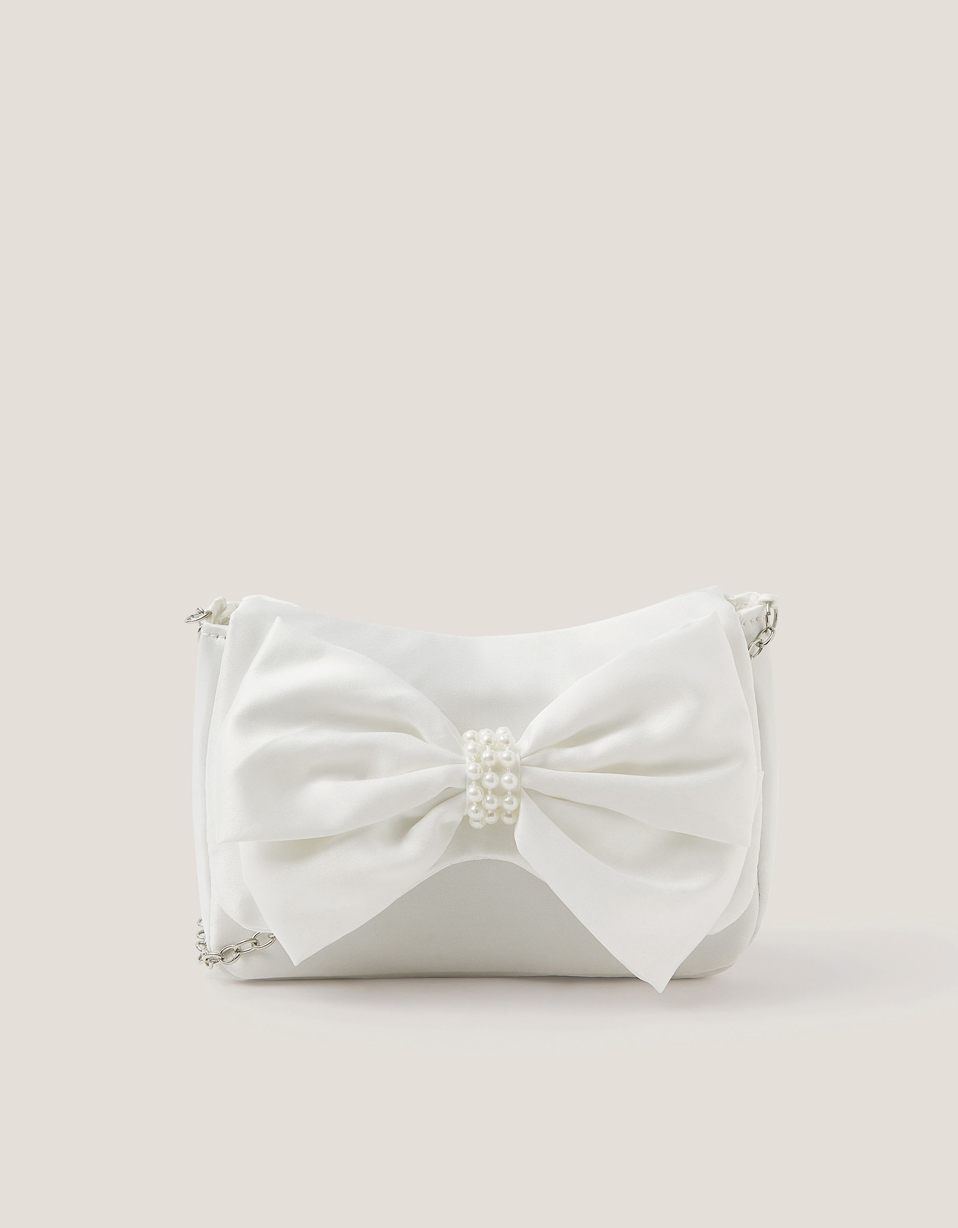 Monsoon Ivory Pearl Bow Satin Bag