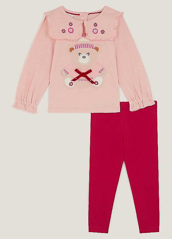Monsoon Kids Baby Bear Collared Top & Leggings Set - Pink - Size 3/4YEARS