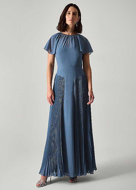 Monsoon Madison Flutter Sleeve Pleated Bridesmaid Dress - Petrol - Size 18