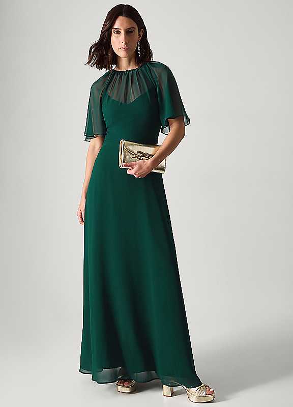 Monsoon Mona Angel Sleeve Maxi Dress - Dark Green - Size 12