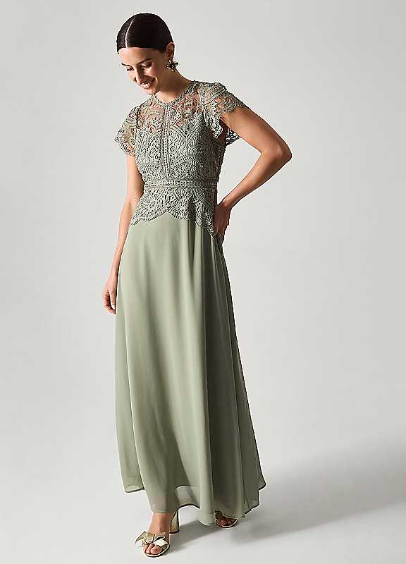 Monsoon Monica Lace Bridesmaid Dress - Pale Green - Size 14