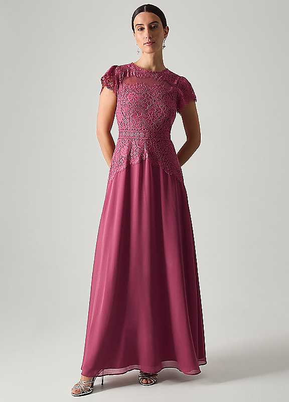Monsoon Monike Short Sleeve Lace Bridesmaid Dress - Dark Pink - Size 6