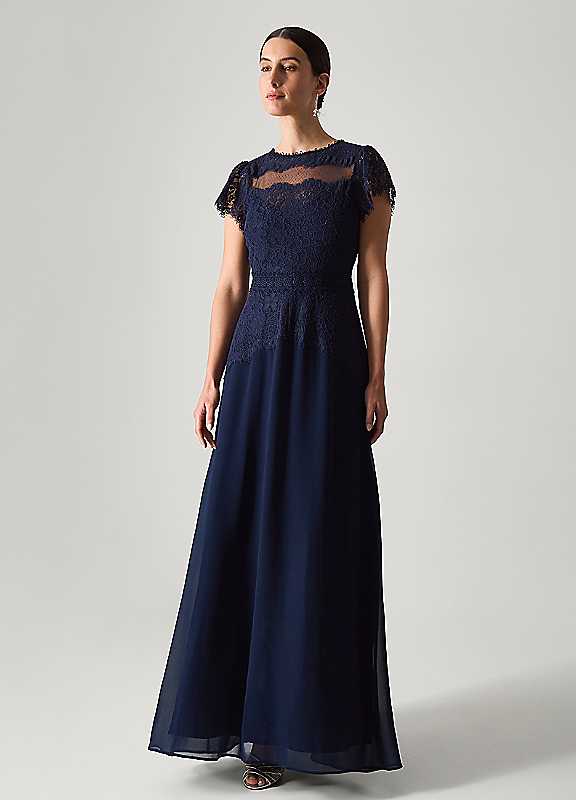 Monsoon Monike Short Sleeve Lace Bridesmaid Dress - Navy - Size 14