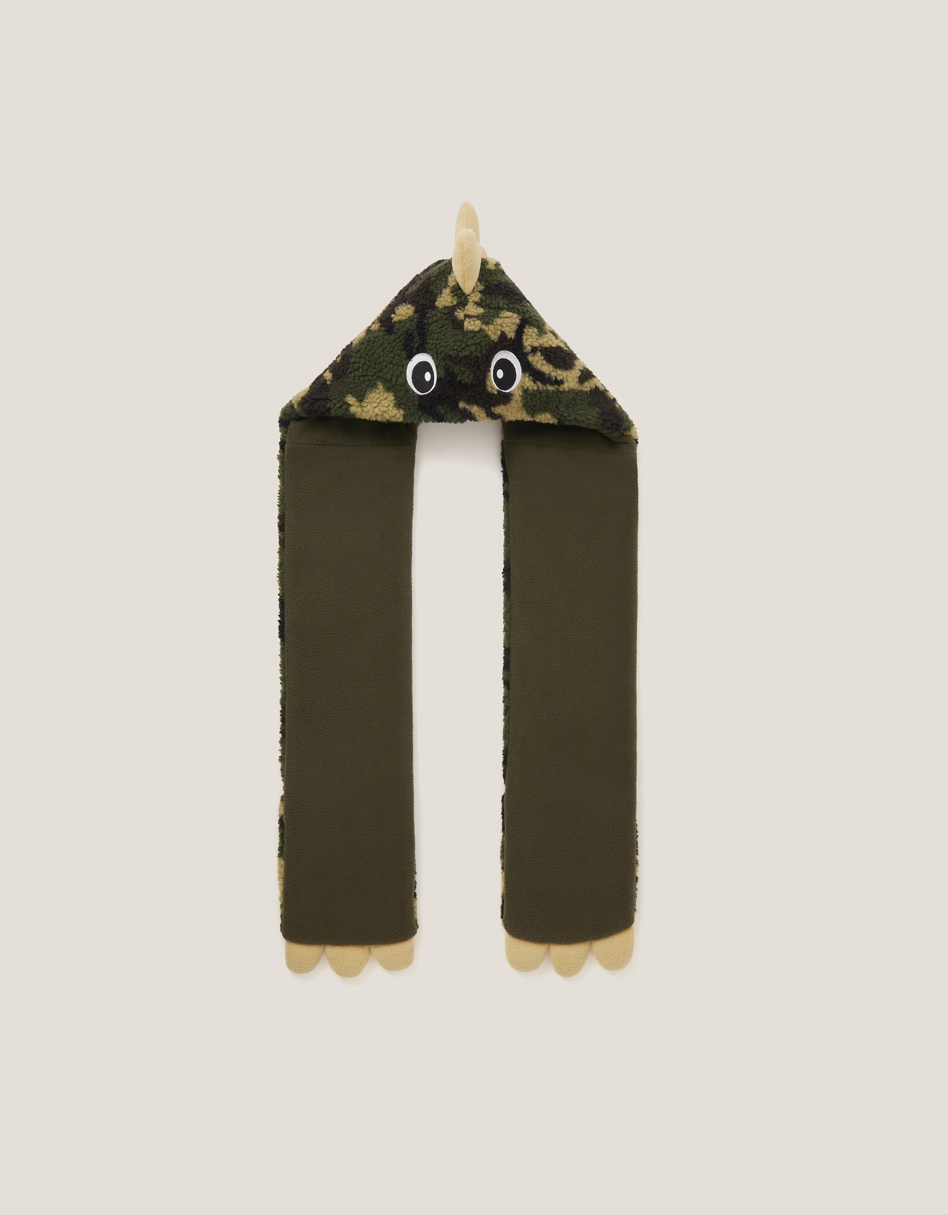 See you later, alligator! Not just a camouflaged croc, this 3-in-1 hat keeps little ones warm from head to fingers. Made from snuggly borg with spikes on the head, the long panels can be wrapped around like a cosy scarf or extended to reveal handy mitten-style pockets at each end. Multi