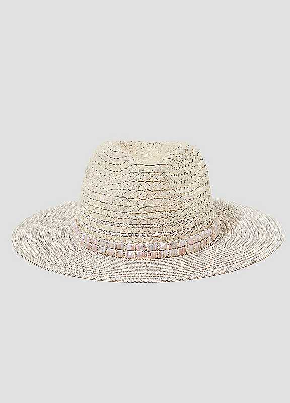 Get those flights booked. Crafted of braided straw in the shape of a fedora, this sun hat is decorated with a pink woven band to finish. Perfect for when you're tanning at the beach or strolling the cobbled streets on your next sunshine holiday.Wipe clean100% Paper