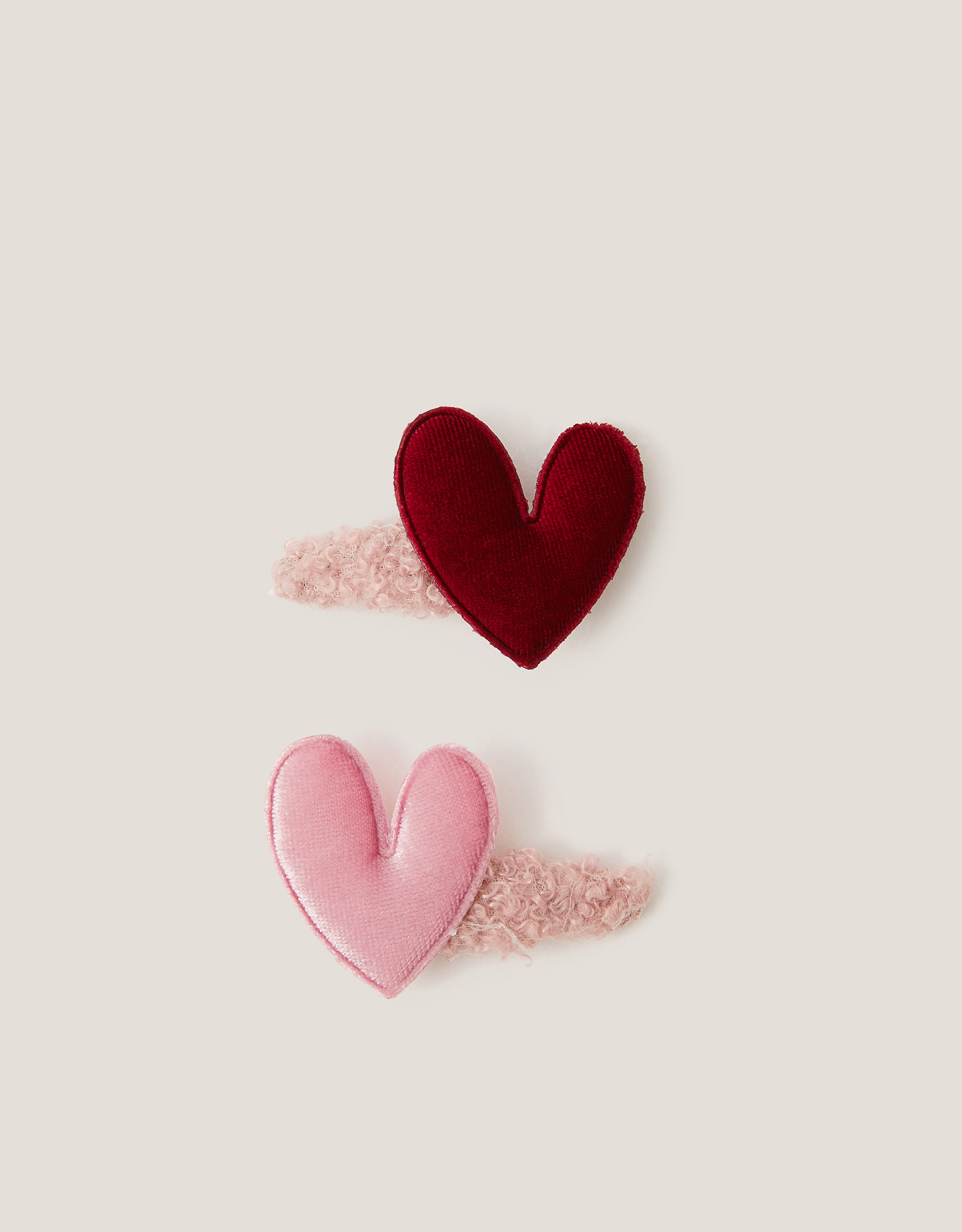 Feel the love. Covered with a textured borg fabric and velvet-soft hearts in pink and red, these hair clips are a cute addition to their everyday. Two included.Warning! Choking Hazard—Small parts. Not suitable for children under 3 years old.