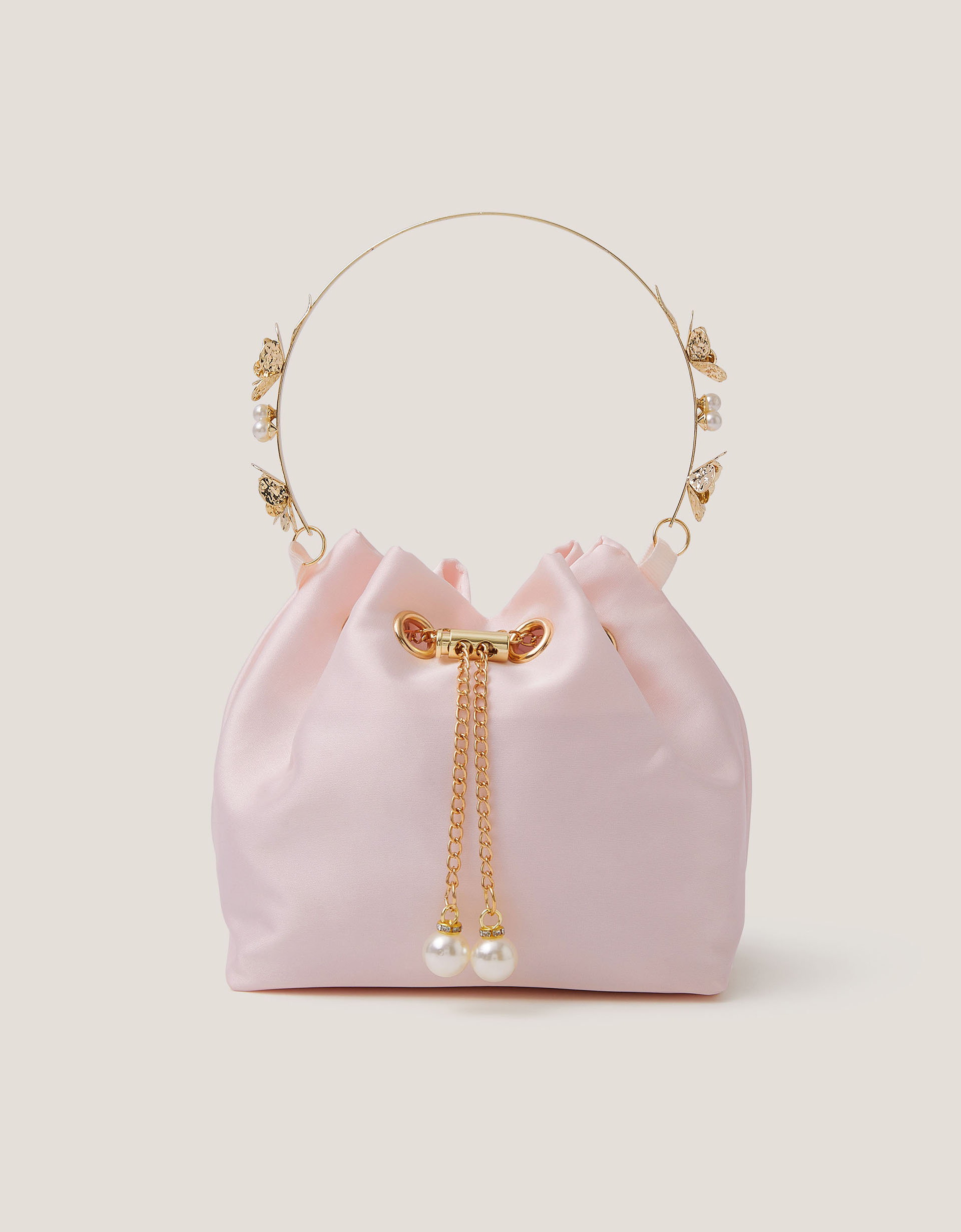 And they lived happily ever after... Featuring a decorative handle, designed with gold-tone flowers and pearls, this bag is fit for fairytales. Made to be shown off at birthday parties and weddings, it's finished with a charming drawstring fastening. Warning! Choking Hazard—Small parts. Not suitable for children under 3 years old.