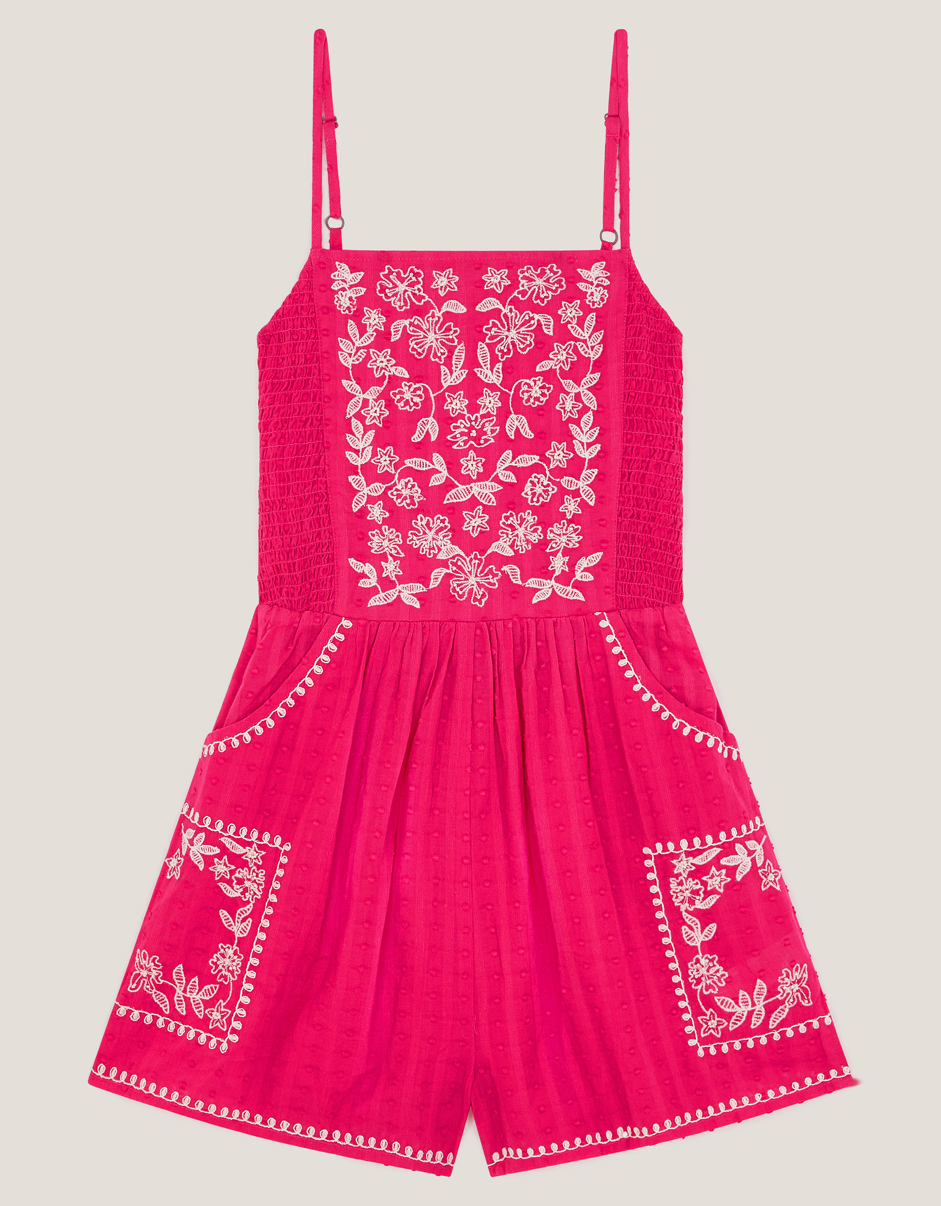 Monsoon Pink Floral Playsuit Embroidered, in Size: 13-14 Years
