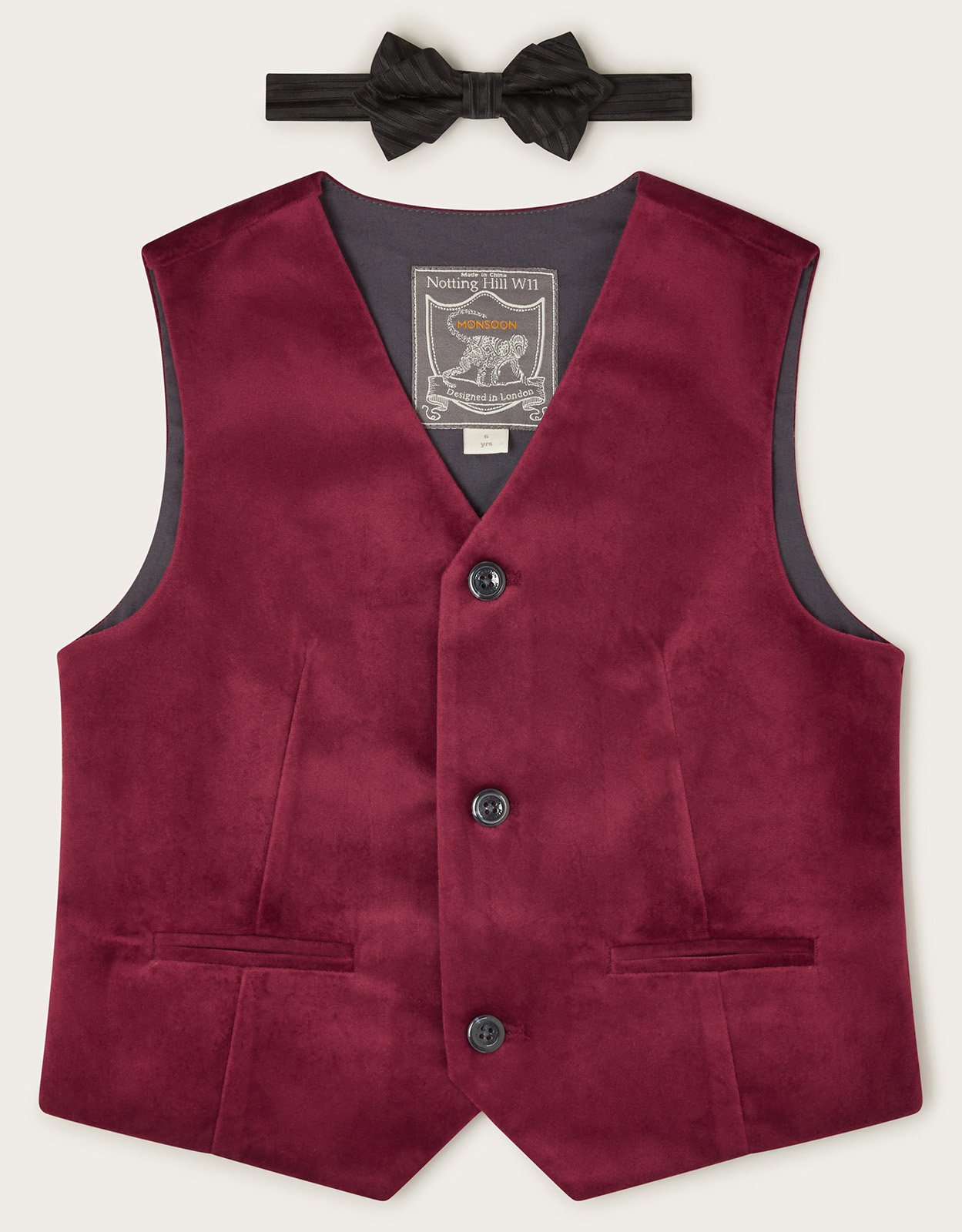 Monsoon Red Velvet Waistcoat and Bow Tie Set Plain, in Size: 7 Years