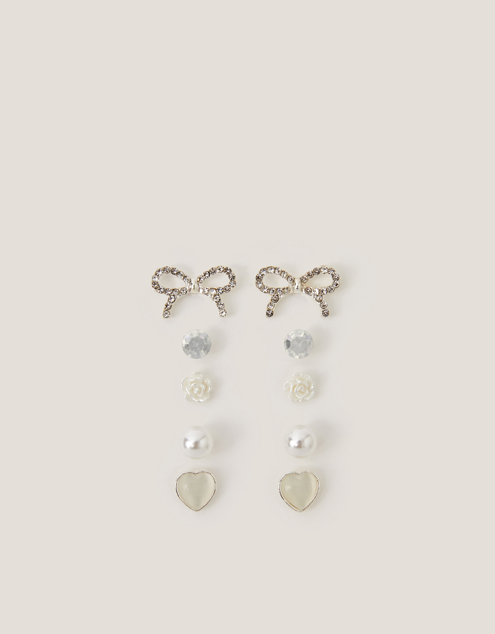 Monsoon Rose 5-Pack Bow & Pearl Stud Earrings