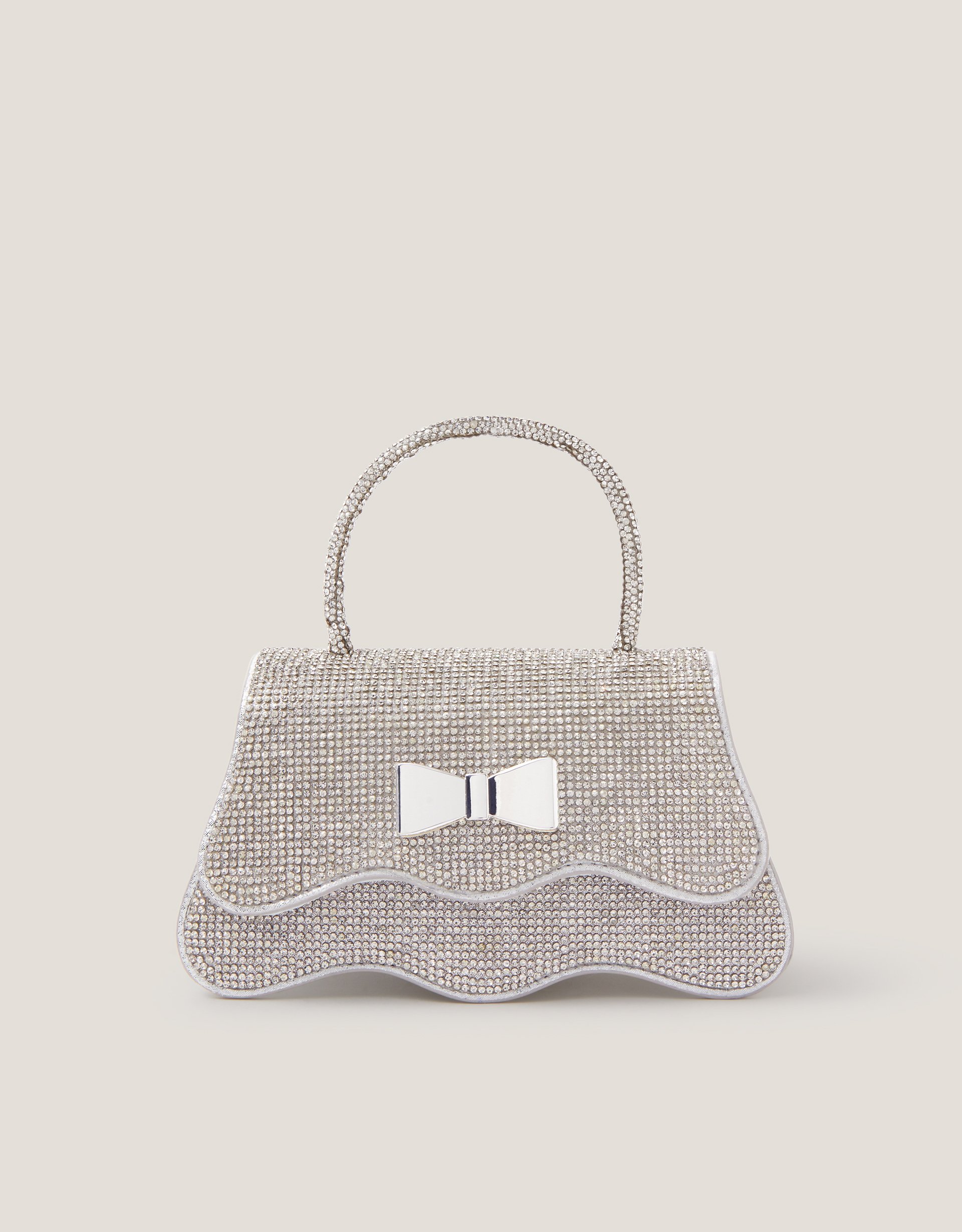 Monsoon Silver Diamanté Bow Handbag, Embellished, in Size: 9x6x16cm