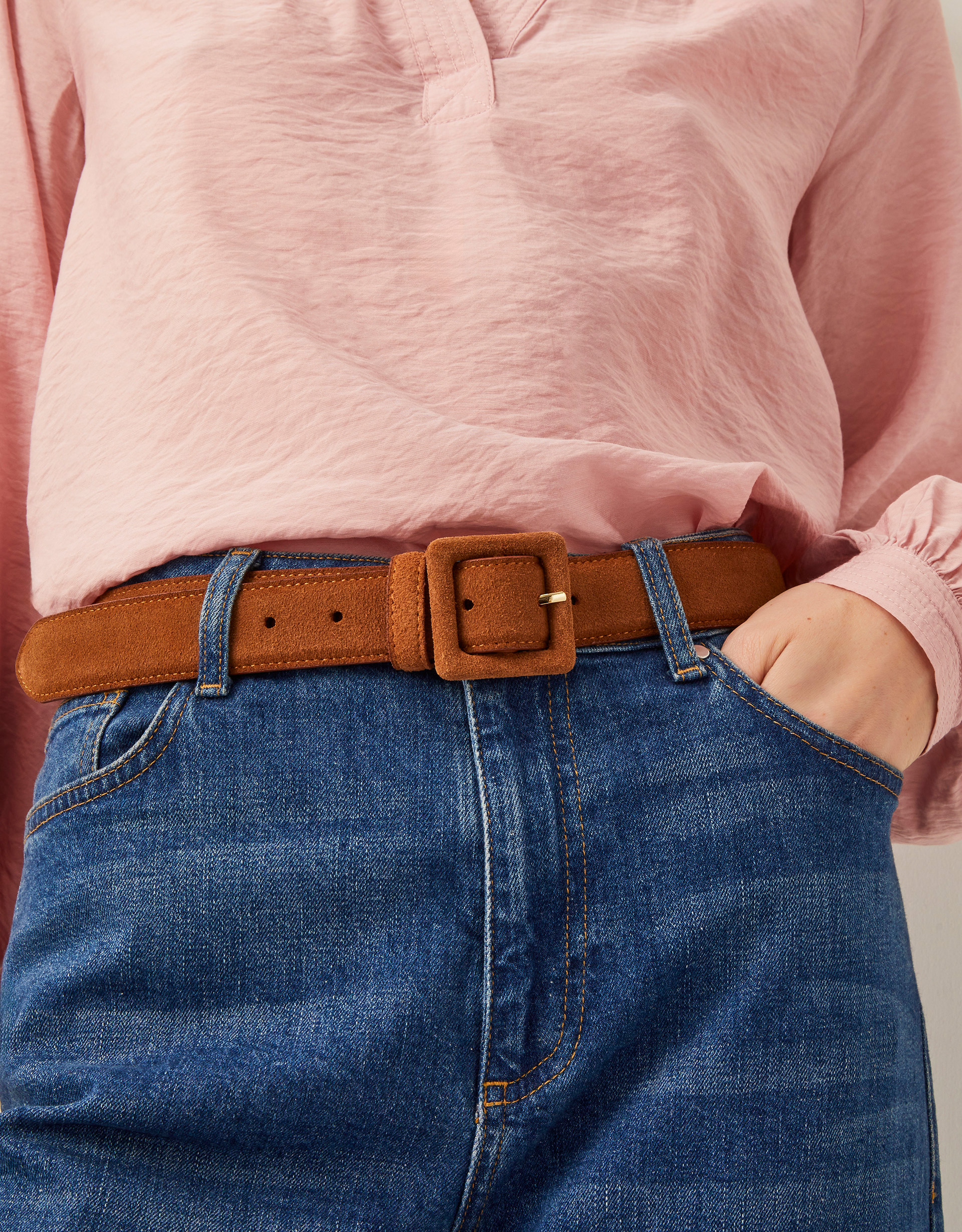 Monsoon Tan Square Buckle Suede Belt, in Size: S/M