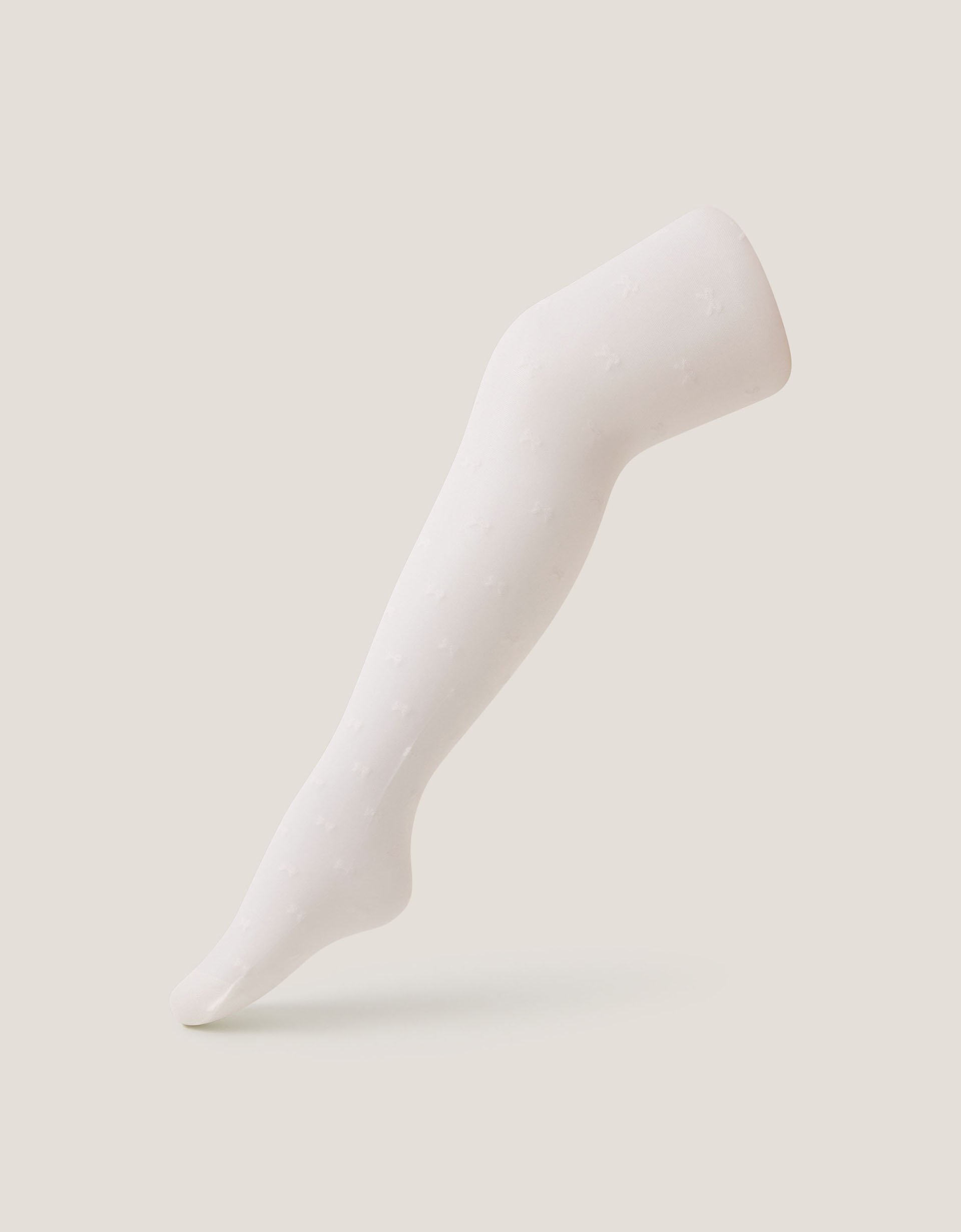 Fool-proof. Something different to their everyday plain tights, this pair is designed in semi-sheer, stretchy nylon with pretty bows for texture. Ideal to style alongside party dresses and two-pieces. White