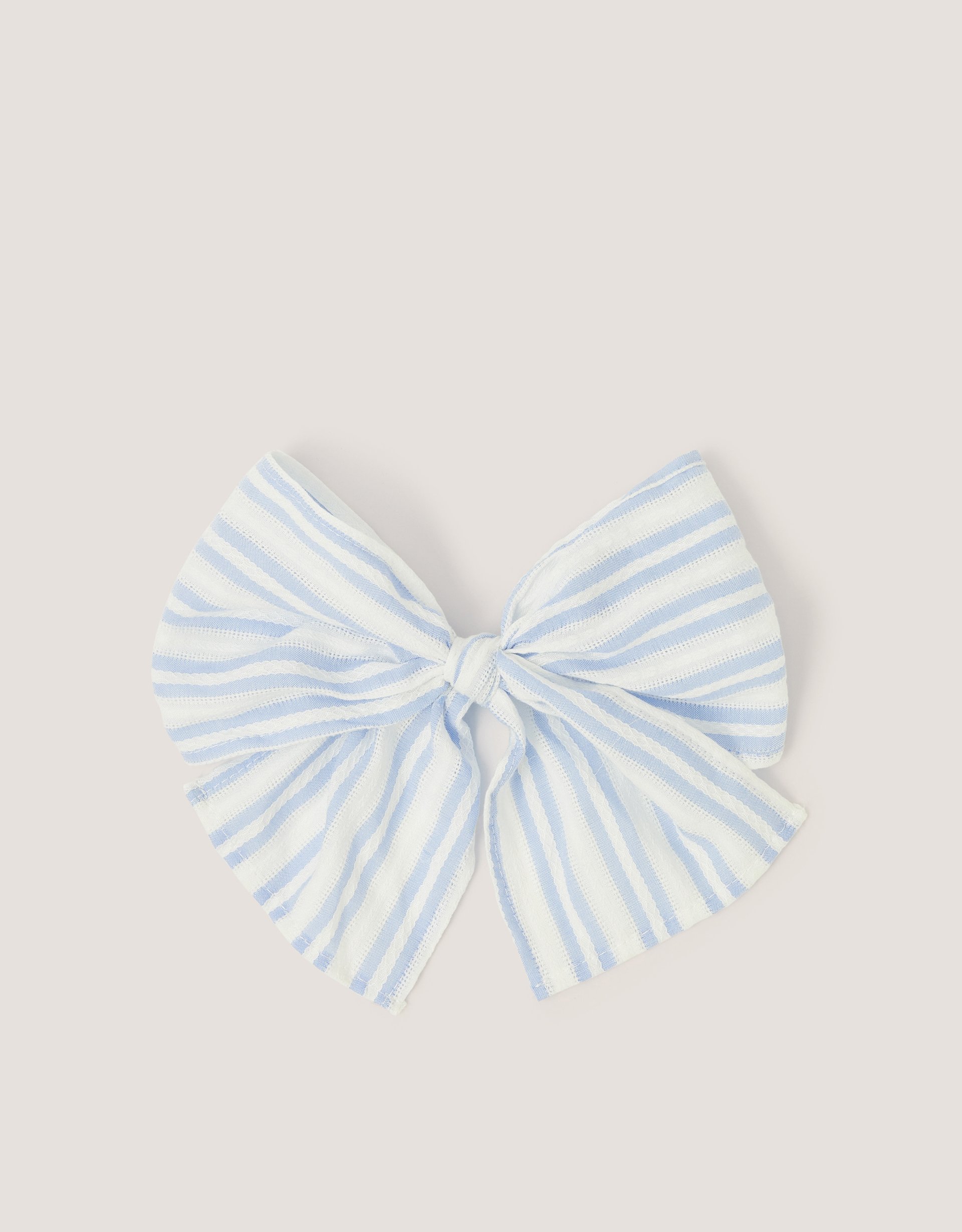 Ahoy, there! We're always on board when it comes to cute accessories. Patterned with blue and white sailor stripes, this hair bow fastens with a silver-tone slide clip.Warning! Choking Hazard—Small parts. Not suitable for children under 3 years old.