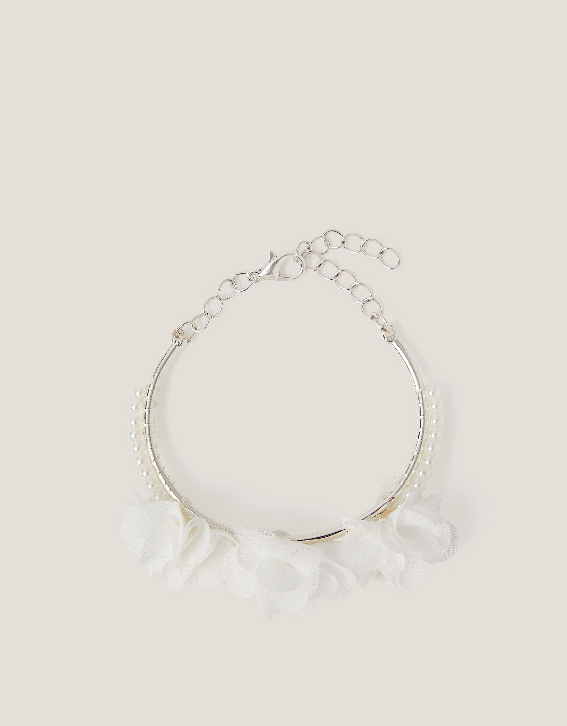 Monsoon White Flower Pearl Cuff Bracelet, Embellished