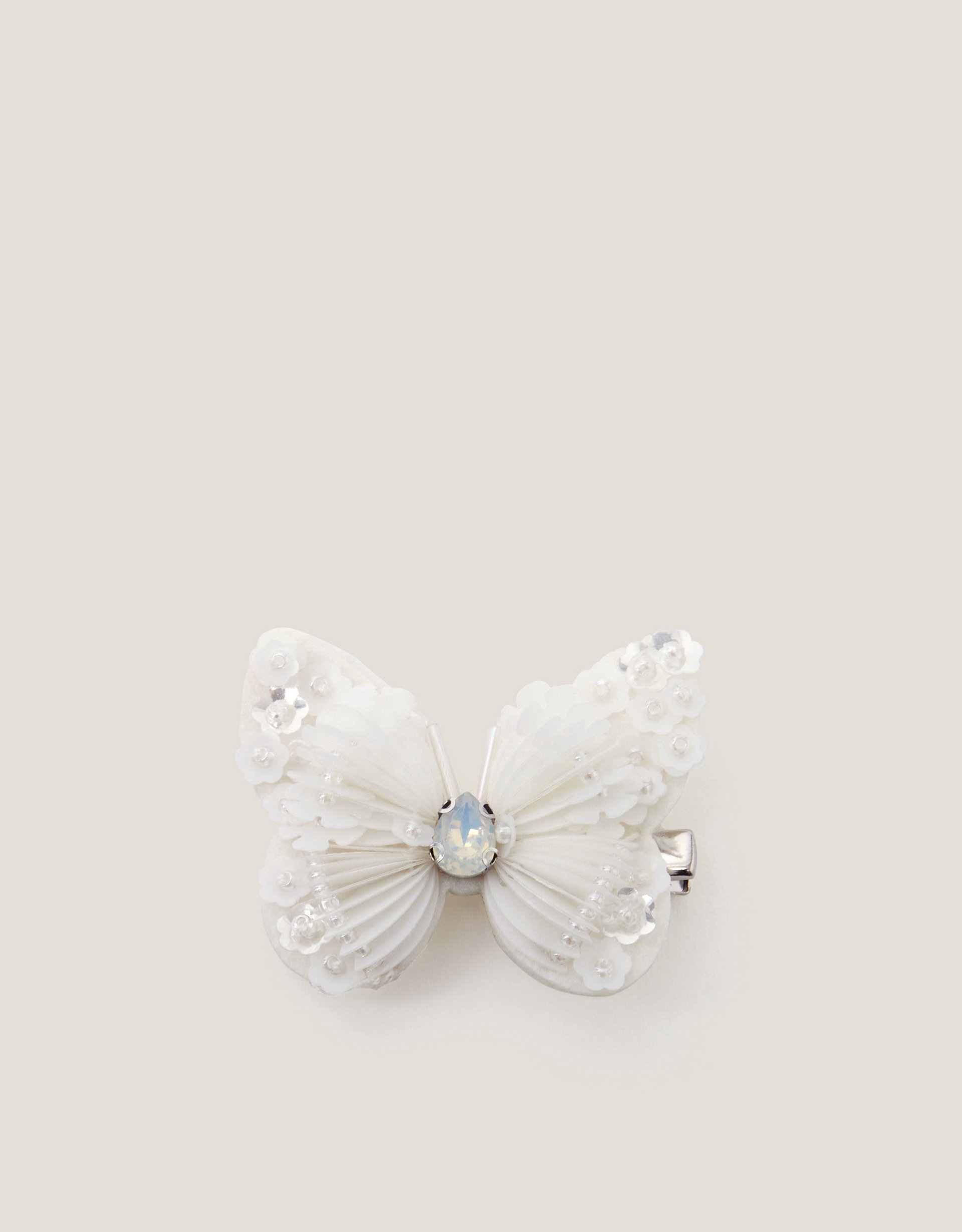 Monsoon White Sequin Butterfly Hair Clip, Embellished