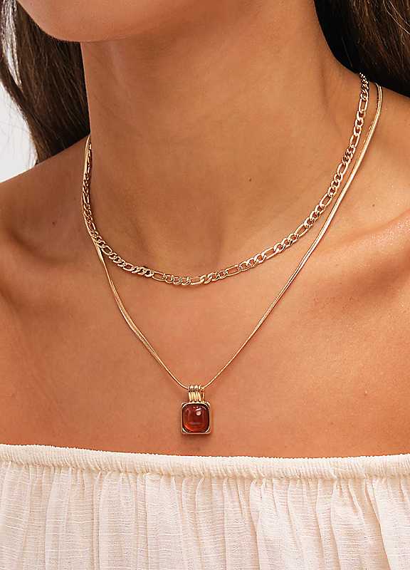 Mood Gold-Plated Double Layer Chain & Resin Necklace - Size ONE SIZE