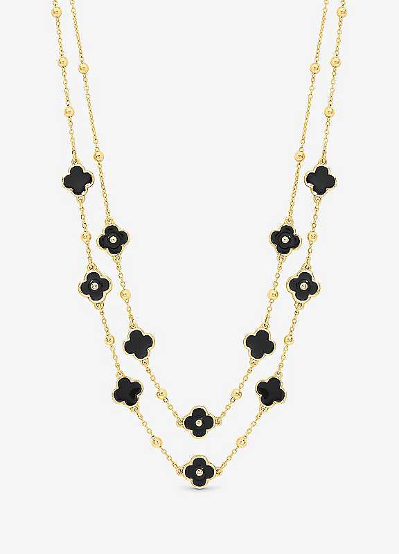 Mood Jet Clover Multi Row Necklace - Black/Gold - Size ONE SIZE
