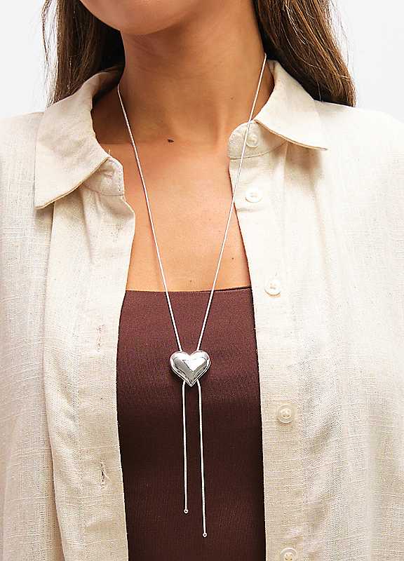 Our Mood Silver-Plated Polished Heart Slider Necklace is a must-have this season, featuring a sleek, adjustable design with a beautifully finished heart charm. Easy to style and perfect for gifting, it brings a refined, sentimental touch to everyday wear.Fastening: Lobster claspCostume jewellerySilver-Plated Base MetalWidth size approx. 25.3 mmLength size approx. 96.5 mm | silver heart necklace, silver heart pendant necklace, adjustable slider necklace, silver plated necklace, adjustable chain necklace, lobster clasp necklace