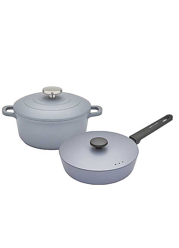 20cm Cast Aluminium Casserole Dish Product Features: Made from High Quality Materials: Made from high-quality, cast aluminum ensuring even heat distribution and retention, as well as preventing hot spots and delivering perfectly cooked meals every time. Stainless Steel Branded Knob: Equipped with a stylish and functional stainless steel branded knob, providing a comfortable grip while adding a touch of sophistication to your kitchen. Suitable For All Hobs: This cast Aluminium casserole dish offers versatile cooking, suitable for all hob types including induction, making it the perfect kitchen companion. Durable Ceramic Non-stick Coating: Offering excellent non-stick performance, making it easier to cook with less oil and allowing for effortless food release and easy cleaning. Oven Safe and Self-Basting Lid: Oven safe up to 220°C and features a self-basting cast aluminium lid, promoting moisture retention for tender, flavorful meals. Sustainably Made from Recycled Materials: Crafted from fully recyclable materials, this product offers an eco-friendly cooking solution without compromising on performance. Lightweight Design: Despite its durable construction, this cast aluminium casserole dish is surprisingly lightweight, making it easy to handle while cooking, especially when hot or full. Hand Wash Only Recommended: To preserve the quality and longevity, we recommend that you hand wash only. The pan is not dishwasher safe, as the high heat and harsh detergents can damage the material, affect its performance. 24cm Forged Aluminium Saute Pan Product Features: Oven Safe up to 180°C: Our pan can be used for stovetop and oven recipes. Made from High Quality Materials: Made from high-quality, forged aluminum ensures even heat distribution, preventing hot spots and delivering perfectly cooked meals every time. Durable Ceramic Non-stick Coating: Offering excellent non-stick performance, making it easier to cook with less oil and allowing for effortless food release and easy cleaning. Suitable For All Hobs: This pan offers versatile cooking, suitable for all hob types including induction, making it the perfect kitchen companion. Comfortable Soft-Touch Handle: Ergonomically designed to provide a comfortable, non-slip grip, the soft-touch handle ensures a secure hold even when the pan is full or hot. Hand Wash Only Recommended: To preserve the quality and longevity of your pan, we recommend that you hand wash only. The pan is not dishwasher safe, as the high heat and harsh detergents can damage the material, affect its performance.Casserole dish weight approx. 1.14kgSaute pan weight approx. 1.88kgCasserole dish dimensions approx. 15H x 21.3W x 27.6L cmSaute pan dimensions approx. 7H x 28W x 47.5L cm | induction suitable cookware, grey cooking pots, cast aluminium cookware, aluminium non stick pan, cast aluminum cookware, oven safe cookware, light weight cookware, saute pan with lid