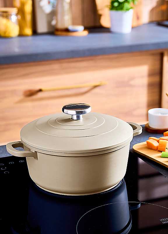 Looking for a reliable, stylish pan for your kitchen? This 2.3L Casserole Cast Aluminium Pan has got you covered! Made from durable cast aluminium, it ensures even heat distribution, so your meals turn out just right. Plus, it's super lightweight, making it easy to move around, even when it's full. The self-basting lid helps keep moisture locked in for delicious, tender dishes. It also features a sleek branded stainless steel knob, adding a touch of class. This pan works on all heat sources, including induction, and can handle oven temperatures up to 220°C. The ceramic non-stick coating makes cleaning a breeze, and it's fully recyclable win for both your kitchen and the planet. Just remember, the handles get hot, so be careful when handling, and handwashing is best to keep it in tip-top shape. It's the perfect balance of convenience and quality! | cast aluminum pan, oven safe cooking pans, light weight cookware, ceramic non stick pans, aluminium non stick pan, cast aluminium casserole dish, cast aluminium cookware, induction ready pans, aluminium casserole dish, anodised aluminium cookware