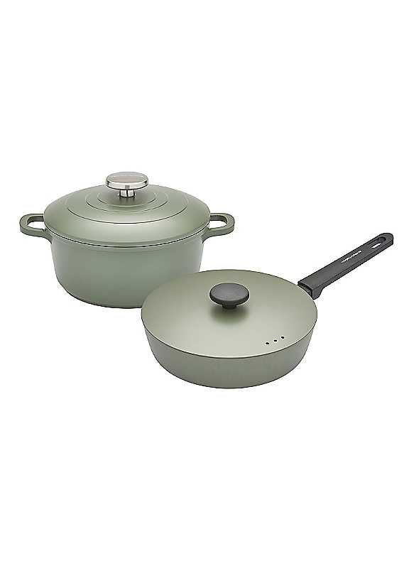 24cm Cast Aluminium Casserole Dish Product Features: Made from High Quality Materials: Made from high-quality, cast aluminum ensuring even heat distribution and retention, as well as preventing hot spots and delivering perfectly cooked meals every time. Stainless Steel Branded Knob: Equipped with a stylish and functional stainless steel branded knob, providing a comfortable grip while adding a touch of sophistication to your kitchen. Suitable For All Hobs: This cast Aluminium casserole dish offers versatile cooking, suitable for all hob types including induction, making it the perfect kitchen companion. Durable Ceramic Non-stick Coating: Offering excellent non-stick performance, making it easier to cook with less oil and allowing for effortless food release and easy cleaning. Oven Safe and Self-Basting Lid: Oven safe up to 220°C and features a self-basting cast aluminium lid, promoting moisture retention for tender, flavorful meals. Sustainably Made from Recycled Materials: Crafted from fully recyclable materials, this product offers an eco-friendly cooking solution without compromising on performance. Lightweight Design: Despite its durable construction, this cast aluminium casserole dish is surprisingly lightweight, making it easy to handle while cooking, especially when hot or full. Hand Wash Only Recommended: To preserve the quality and longevity, we recommend that you hand wash only. The pan is not dishwasher safe, as the high heat and harsh detergents can damage the material, affect its performance. 28cm Forged Aluminium Saute Pan Product Features: Oven Safe up to 180°C: Our pan can be used for stovetop and oven recipes. Made from High Quality Materials: Made from high-quality, forged aluminum ensures even heat distribution, preventing hot spots and delivering perfectly cooked meals every time. Durable Ceramic Non-stick Coating: Offering excellent non-stick performance, making it easier to cook with less oil and allowing for effortless food release and easy cleaning. Suitable For All Hobs: This pan offers versatile cooking, suitable for all hob types including induction, making it the perfect kitchen companion. Comfortable Soft-Touch Handle: Ergonomically designed to provide a comfortable, non-slip grip, the soft-touch handle ensures a secure hold even when the pan is full or hot. Hand Wash Only Recommended: To preserve the quality and longevity of your pan, we recommend that you hand wash only. The pan is not dishwasher safe, as the high heat and harsh detergents can damage the material, affect its performance.Casserole dish weight approx. 1.47kgSaute pan weight approx. 1.89kgCasserole dish dimensions approx. 17.6H x 25.2W x 32L cmSaute pan dimensions approx. 10.9H x 28.5W x 47.5L cm | saute pan with lid, best saute pans, oven safe cookware, light weight cookware, good quality non stick pans, induction safe cookware, non stick cookware, large saute pan, cast aluminium cookware, aluminium casserole dish, cast aluminium casserole dish