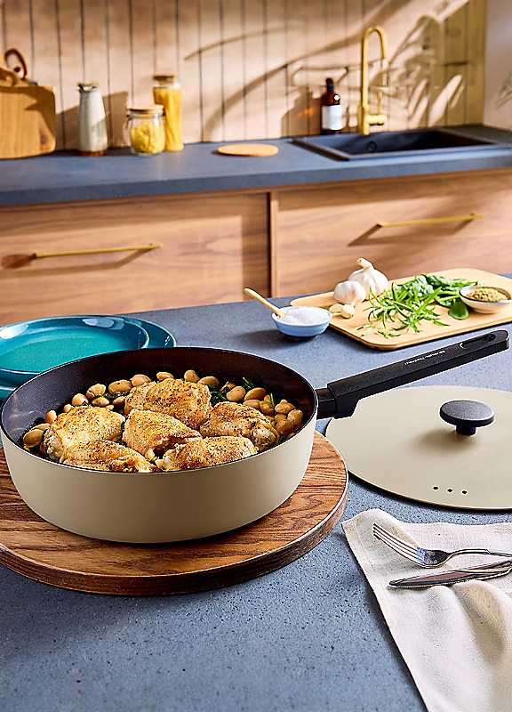 Introducing our 28cm Forged Aluminium Saut© Pan, the perfect addition to your kitchen to elevate your cooking. This aluminium pan features a premium non-stick coating that delivers exceptional performance, making it ideal for a wide range of dishes. With its durable construction, it is designed for everyday use. The generous 28cm size is perfect for preparing tasty meals such as chilli, Bolognese, risotto, and more. For best results, simply hand wash the pan to maintain the non-stick surface. Upgrade your cooking experience today with this versatile saut© pan!
