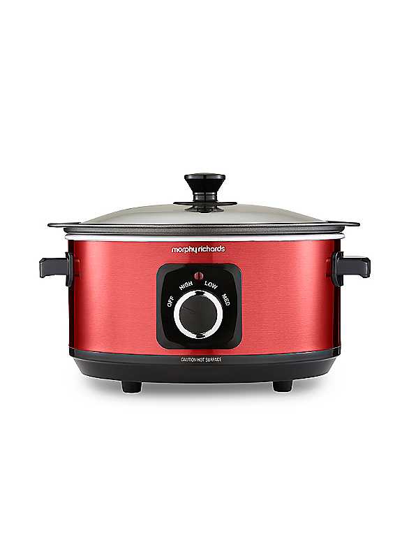 Discover the Morphy Richards sear & stew slow cooker! This one-stop-pot simplifies everything by allowing you to sear and slow-cook in a single pot. This slow cooker (sometimes known as a crockpot) is designed with a light and durable aluminium pot so you no longer need to worry about serving cumbersome dishes at mealtime. You'll also benefit from three heat settings so you can easily customise your cooking settings. Plus, this hob proof cooking pot (not suitable for induction) is easy to clean as it is dishwasher-safe. Making every day meals has never been easier; trust the sear & stew 3.5l slow cooker to take care of all your culinary needs! Hob Proof Cooking Pot: Jumpstart your cooking with our innovative hob proof pot. You can seamlessly sear meats to lock in those sumptuous flavours & juices before stewing them to perfection, all within the same pot. This innovative feature streamlines the cooking process, minimising clean-up & maximising efficiency. Please note, this cooking pot is not suitable for Induction hobs. Lightweight & Durable: The Sear & Stew's cooking pot is not just about cooking efficiency - it's also designed for convenience. Being lightweight & durable, it transitions from kitchen to table with ease, so serving your delectable dish is as simple as lifting the lid. Three Heat Settings: Adaptability is key in any kitchen arsenal. With three distinct heat settings - high, medium, or low - you can tailor the cooking temperature to suit the specific needs of your recipe, ensuring perfect results every time. Whether you're away for hours or prepping for a quick meal, your Sear & Stew caters to every time frame. Dishwasher-Safe Convenience: In the spirit of simplicity, the Sear & Stew's cooking pot boasts a non-stick coating, meaning not only will your meals come out perfectly, but clean-up becomes a breeze. Once dinner's done, just pop the pot in the dishwasher & enjoy more time savouring your culinary creation Product Wattage: 163W Dimensions approx. 25D x 33W x 20H cm