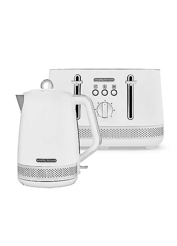 Make your kitchen centrepiece the Illumination Jug Kettle! This stylish, sophisticated kettle comes with a stunning blue illumination that is guaranteed to bring a touch of brightness and cheer to your kitchen.It offers an impressive 1.7L capacity, easily allowing you and all your friends and family to get their caffeine fix without having to refill it again and again. With its 3kw element and rapid boil feature, you can have boiling hot water ready in no time at all - great for busy mornings or when you crave something warm in the evening! And thanks to the easy-view water window you can make sure you're not using up more energy than necessary. With a unique 360-degree base design you can dock the kettle from any direction - making it easy for everyone to use! Get your Illumination Jug Kettle now and relish in a comforting cup of tea every day.Calming blue illumination during boil3kw element and rapid boil feature for faster brews1.7L Capacity makes up to 6 drinks per boilEasy-view water window to help save energy360-degree base for easy docking from any directionThe toaster is not only aesthetically pleasing, with a calming light display to add to its modern look, but also provides convenience. With variable width slots and browning controls, you can customise the toast to your liking. Enjoy buttery toast every time with the auto pop up function to easily remove it from the appliance. No matter if you prefer thick or thin slices, our toaster allows you to adjust the slot widths accordingly. We prioritise performance as well as style making this 4-slice a must-have in any home.Calming blue illumination to base and buttonsVariable browning control for toast the way you like itAuto pop up function to easily remove your toastReheat and defrost functionsSlots have variable width for doorstep slabs or slender slicesBuilt in cord tidy and removable crumb trays