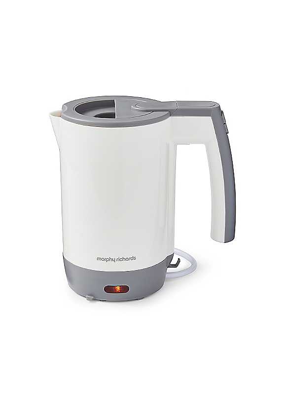 Our compact travel kettle is the ideal solution for small kitchen set-ups, caravans, camping trips, travelling, guest bedrooms and more! Not to mention, with its compact 0.5L water capacity its lightweight design also makes this kettle a great choice for those with arthritis or similar ailments. Coupled with two tea cups, this small electric kettle provides just the right amount of water for a quick cup of tea or coffee, without taking up too much space.Functionality and safety are paramount here at Morphy Richards, so we are pleased to confirm that this jug kettle is constructed with top-tier features like auto-switch off at boil and boil-dry protection, while the hinged lid makes filling and cleaning a breeze. So, whether you're setting up a small kitchen, looking for a small bedroom kettle for a guest room, or need a reliable travel companion, this mini kettle delivers on both functionality and portability.0.5L Water Capacity: Makes 2 servings & perfect for making a quick cup of tea or coffee without using excessive energy or space. Lightweight design also makes this kettle a great choice for those with arthritis or similar ailments2x Tea Cups Included: Ensuring you have everything you need for a convenient tea or coffee break while on the goJug Kettle: Sleek & easy to handle, offering a comfortable grip & efficient boilingAuto-Switch Off at Boil: Turns off once the water has reached boiling point, preventing overheating & saving energyBoil-Dry Protection: Automatically shuts off the kettle if there's no water inside, safeguarding the appliance from potential damageHinged Lid: Allows for easy filling & prevents spills, making the kettle user-friendly & safe to operateWeight approx. 0.55kgCable Length: 70cmWattage: 900-1080WDimensions approx. 18.7 x 18.1 x 10.7 cm