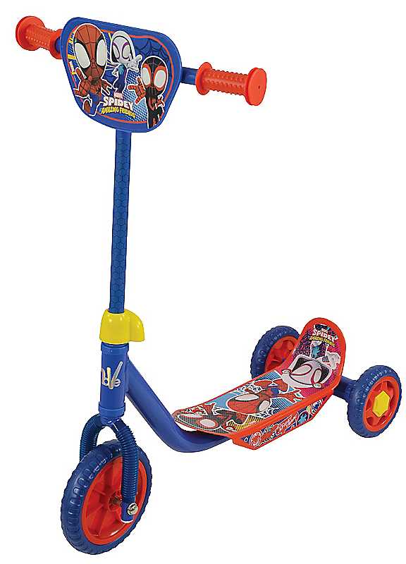 Swing into action with Spidey and His Amazing Friends on our Deluxe Tri-scooter, perfect for little adventurers! This scooter is packed with features to ensure safety and fun. The fully printed anti-slip footplate not only keeps your child secure but also showcases cool iconic graphics inspired by Spidey and his friends. With smooth sides to prevent knocks to ankles, your little one can ride with confidence. The wide puncture-proof tires with deep tread provide optimal grip and stability, making it easy for riders to get the hang of scooting. For added safety and durability, the forks are protected, and the rear axles are covered. Plus, the adjustable handlebar height grows with your child, ensuring a comfortable ride as they grow. Complete with a cute custom-shaped character plaque and stem wrap, this Deluxe Tri-scooter is perfect for riders up to 20kg. Let your child's imagination soar as they join Spidey and His Amazing Friends on thrilling adventures!CHARACTER FAVOURITES - officially licenced with character favourites! Featuring brightly coloured decals, shaped plaque and components ideal for visual development!ROBUST - durable steel frame and puncture proof EVA tyres ensure confidence and longevity or productTHREE WHEEL DESIGN - the 3-wheel scooter design is easy to control and steer making it ideal for youngsters. 6 in front wheel and 4 in rear wheelsCOMFORT - the handlebars feature soft moulded grips for little hands. The deck is fully printed with smooth sides reducing injury to ankles. Forks and rear wheel nuts are covered for additional safety as well as improved visual designGREAT FOR YOUNG CHILDREN - encourages the development of balance and coordination with an adjustable handlebar height of 63-69cmSAFETY FIRST - EN71 tested. CE UKCA compliant. Non-toxic plasticMaximum user weight 20kgSuitable age 3+ years