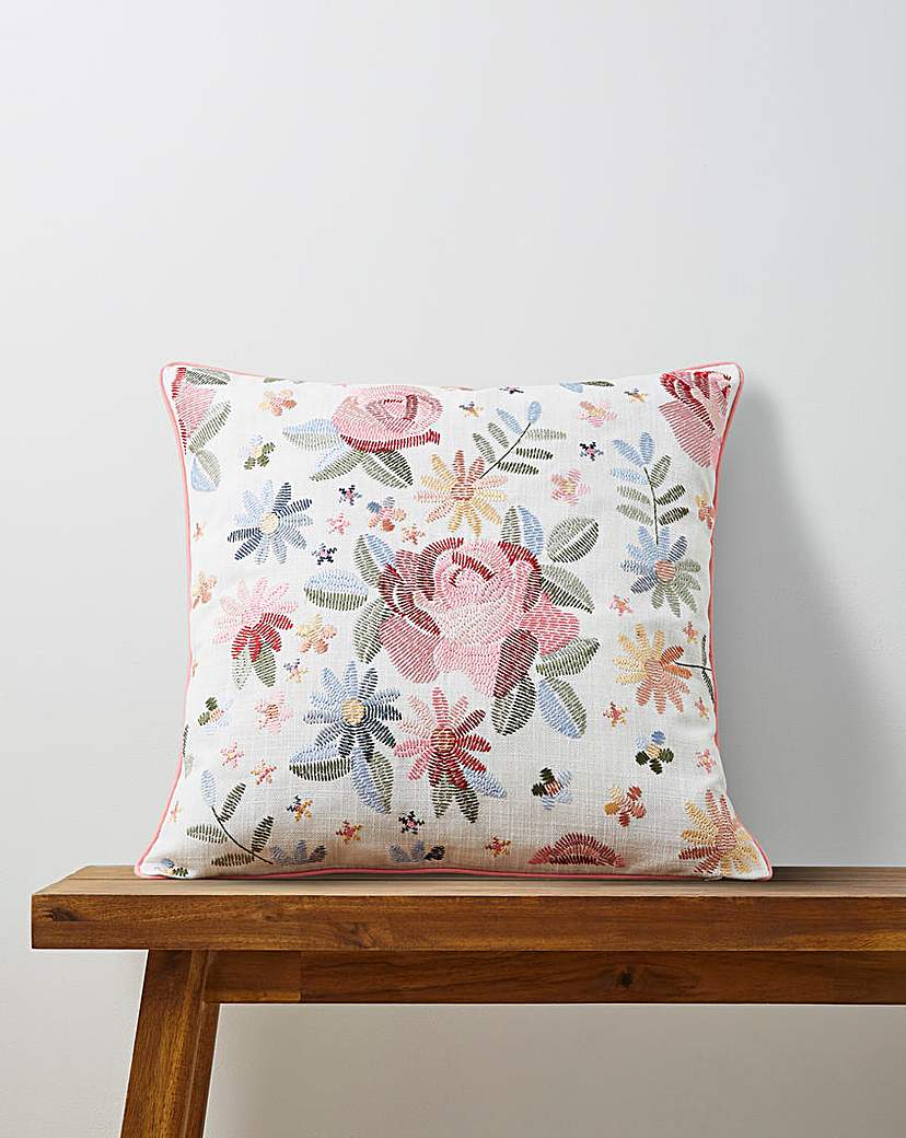 The Maeve Embroidered Floral Cushion features a beautifully detailed floral design, adding an elegant and sophisticated touch to your decor. 1pc cushion. 30 degree wash