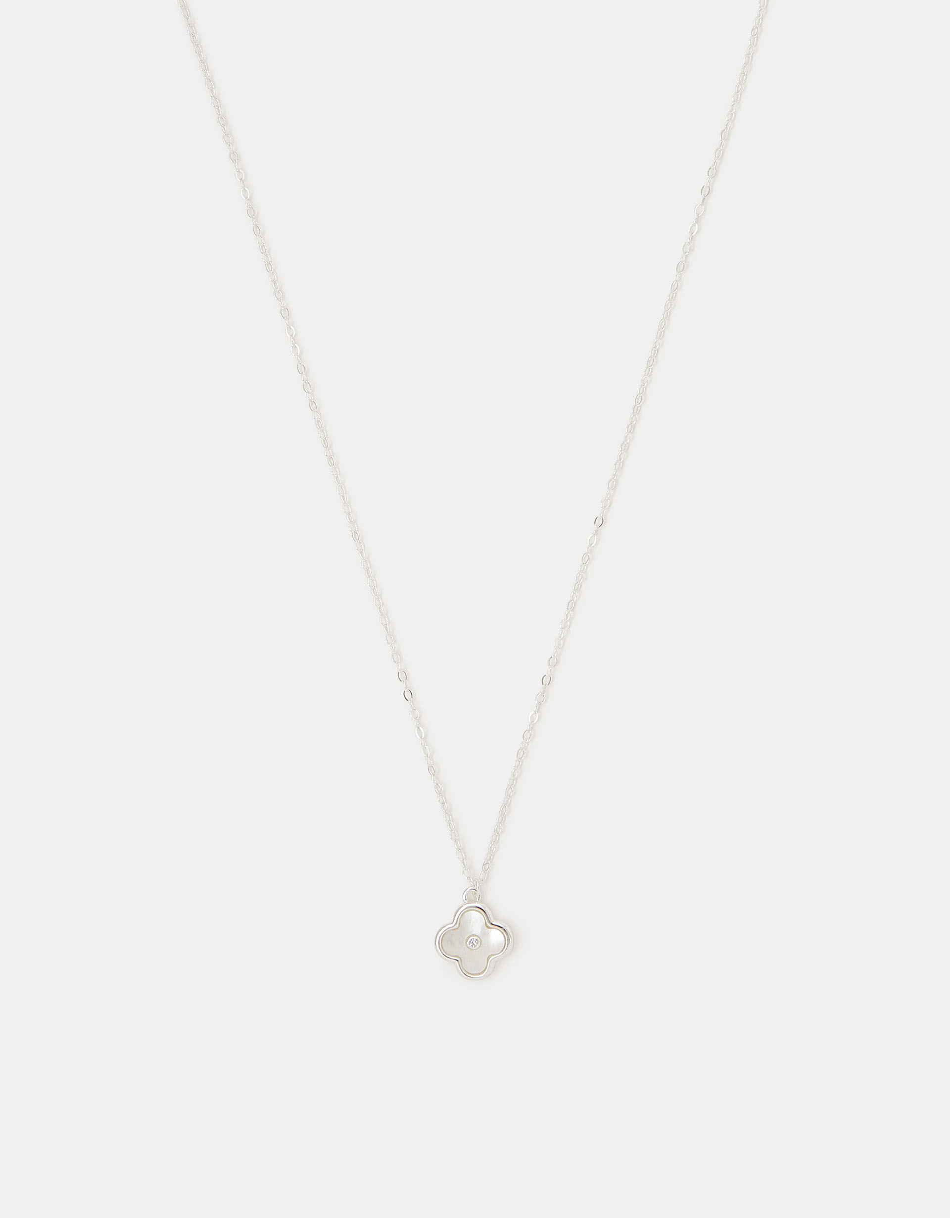 Multicolour Sterling Silver Mother of Pearl Clover Pendant Necklace - Accessorize