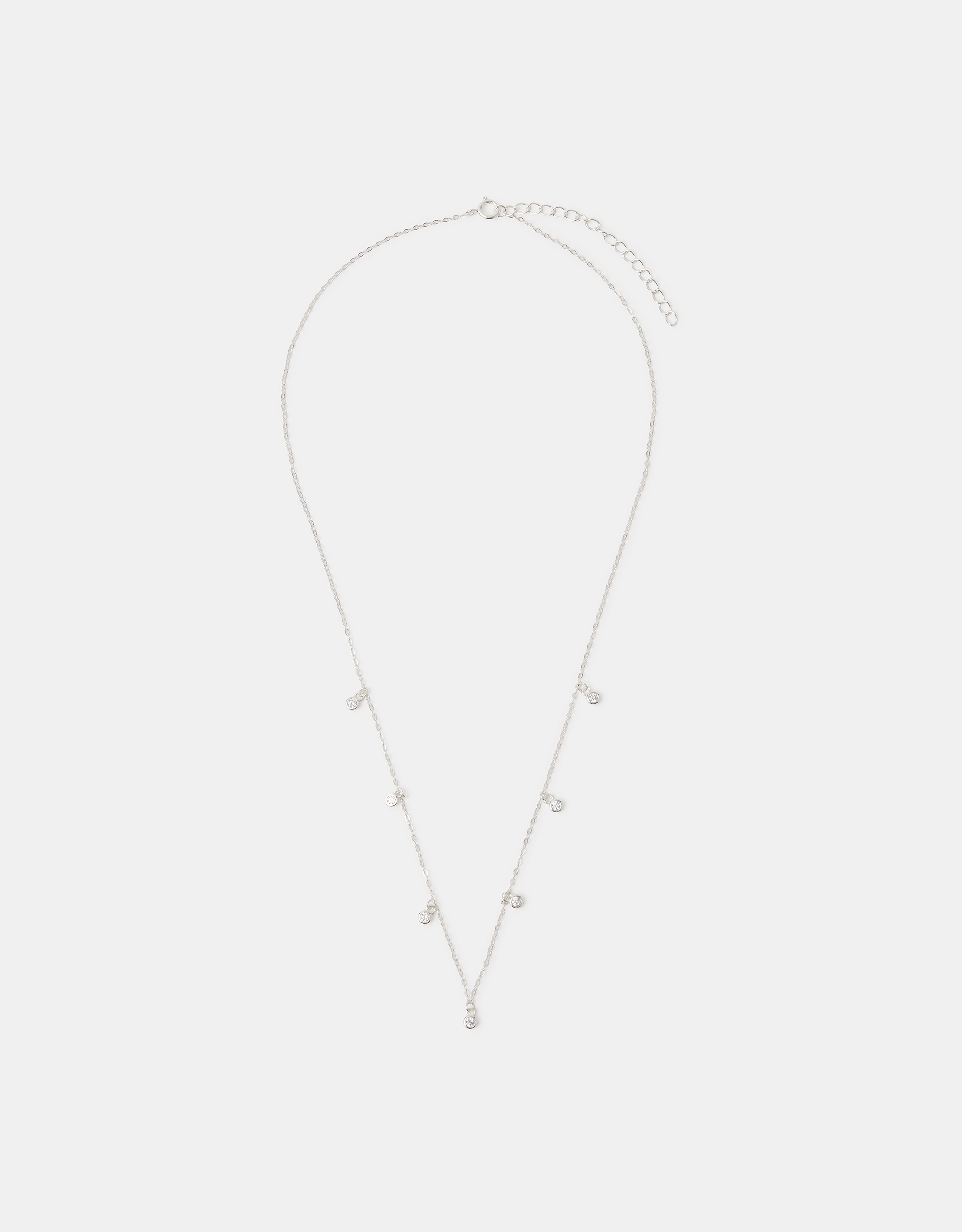 Serving daily sparkle, this necklace has been crafted in 925 sterling silver and features dainty cubic zirconia charms. Why not style with other chains for a stack that always wins?