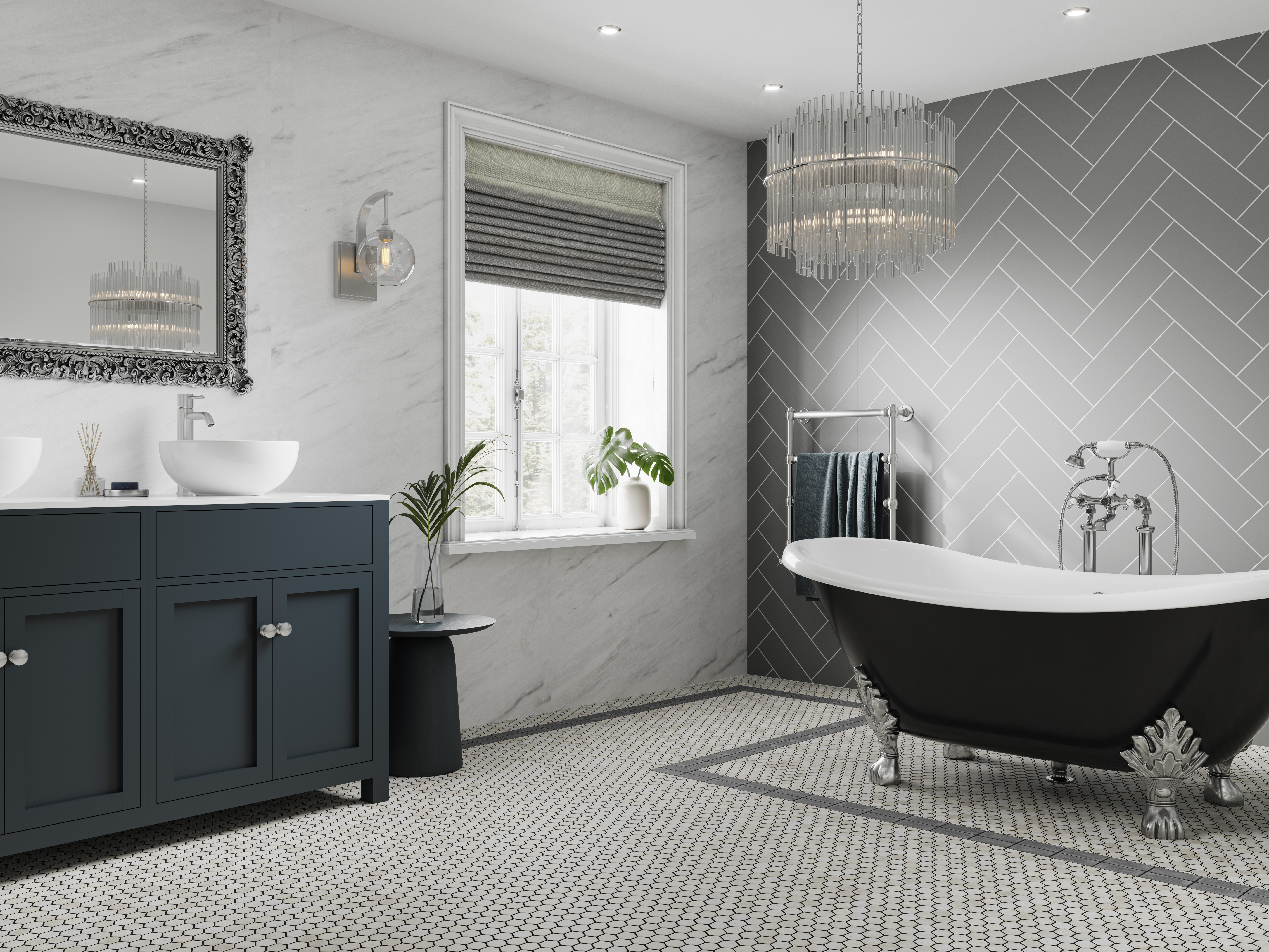 Multipanel Pure Unlipped Levanto Marble Shower Panel - 2700 x 1200 x 11mm - This pure collection by Multipanel offers a cost effective and functional solution for transforming your bathroom with clean, sheer finishings of pure colour and classic textures.