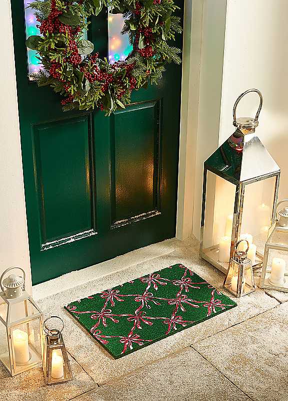 Expertly crafted from natural materials, My Coir Mat is the perfect welcome to any doorway. The hard-wearing natural coconut husk fibres remove dirt, dust and mud at the door, while looking great and being an eco-friendly choice. Introduce festive red and green tones with our Festive Bows design. Featuring red bows, arranged in a trellis design, across a green background, it provides the perfect Christmassy welcome. The natural coconut husk fibres remove muck at the door, while looking great and being an eco-friendly choice. Hardwearing Spot clean only Natural coir Hang to dry in a ventilated area, away from the sun Size approx. 40 x 60 cm