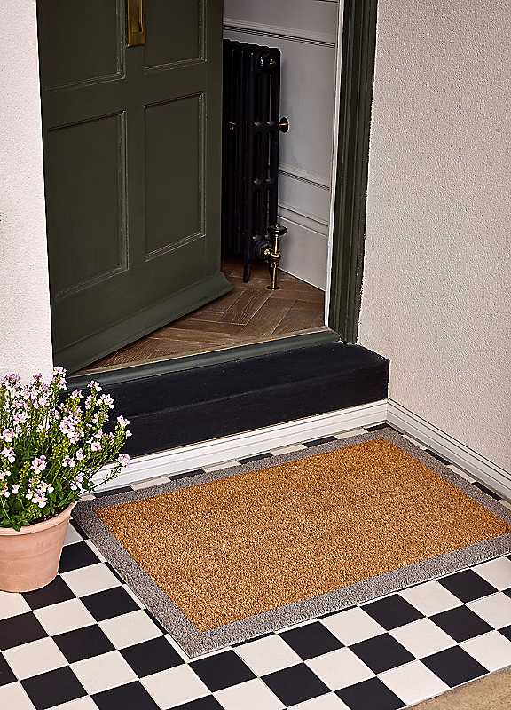 Expertly crafted from natural materials, My Coir Mat is the perfect welcome to any doorway. Our Taupe Border Coir Mat is a modern design, making it perfect for any home. The natural coconut husk fibres remove muck at the door, while looking great and being an eco-friendly choice.Hand wash or jet washFront: 100% Coconut HuskReverse: LatexSize approx. 45 x 75 cm