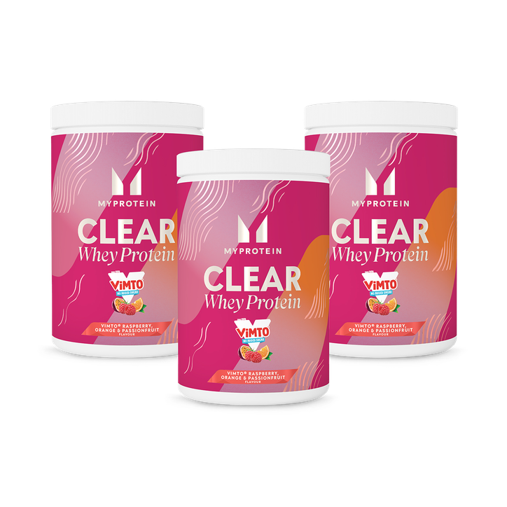 Myprotein Clear Whey Vimto Raspberry Orange Passionfruit Bundle x3 What's included: (For more information see individual product details): Myprotein Clear Whey Vimto Raspberry Orange Passionfruit 261g