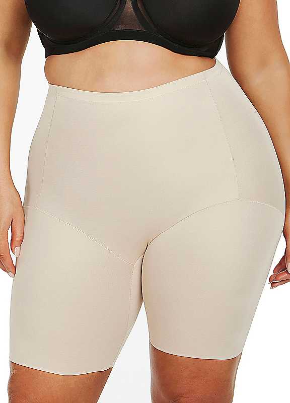 How many times have your bought a shaper, loved its fit, but then let it languish in your dresser drawer because it no longer fit after you gained or lost some weight? Well, this style will avoid that fate. Incorporating an adjustable fabric, it also features an incredibly flexible Wonderful Panel® that provides targeted, stitch-free, no-show tummy control. Bonded to the primary ply only at its perimeter, this panel adjusts to changes in your body's size in a way that traditional, rigid panels cannot. And, a mesh insert at the top of the garment's back prevents the waistband from digging, pinching, or rolling while providing additional adjustability. Choose this bike pant to shape your tummy, hips, & upper thighs. Brand: Naomi & Nicole Plus size Comfort Control Brief Machine washable (warm) Use only non-chlorine bleach when needed Tumble dry low Do not iron Do not dry clean Body: 82% Nylon, 18% Elastane (Spandex) Gusset: 92% Cotton, 8% Elastane (Spandex) | spandex shape wear, tummy thigh shaper, waist body shaper, cotton shape wear, waist compression garment, plus size shapewear, high waisted shapewear