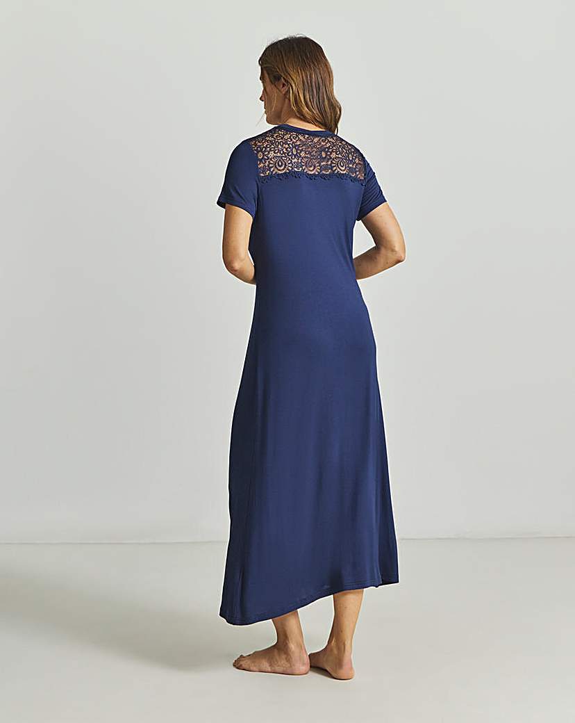 Made from light viscose fabric with added stretch, this nightie from our viscose range provides maximum comfort. Regular fit. Made from viscose and lace fabric for a touch of natural stretch and comfort. Short sleeves. Navy round neck nightie. Our viscose range is designed with fit, comfort and breathability in mind. Shop our range online now, available in pyjamas, nighties and gowns to mix and match your nightwear styling.