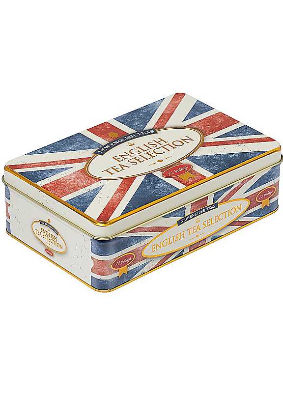 A 72-teabag selection tin celebrating the United Kingdom from our Best of British collection. Adorned with a retro effect Union Jack design and gold accents, this quintessentially British gift is the perfect travel souvenir or gift for those who love all things British. Inside, you'll find a decadent assortment of our signature English Breakfast, English Afternoon, and Earl Grey teabags. Elevate your gifting experience with this exquisite tea tin. For ingredients information click here