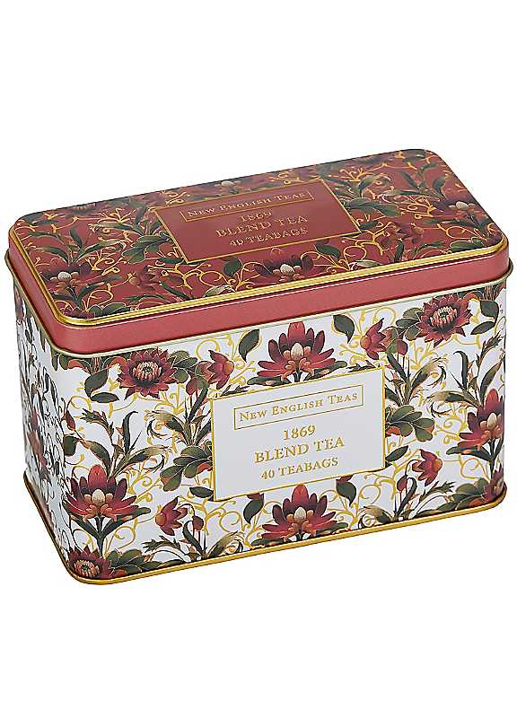 New English Teas Embroidery Collection Classic Tea Tin Lotus Flower